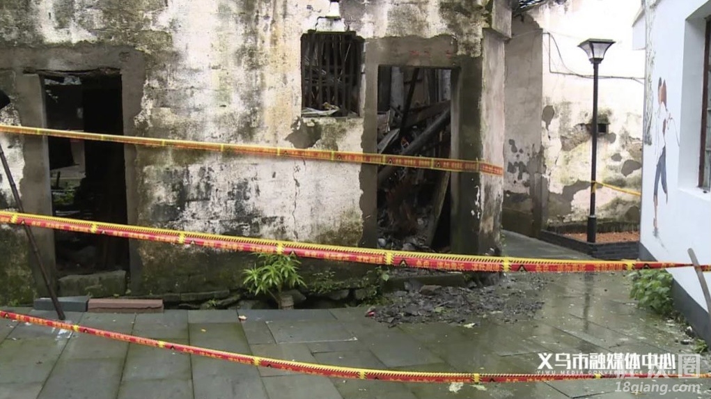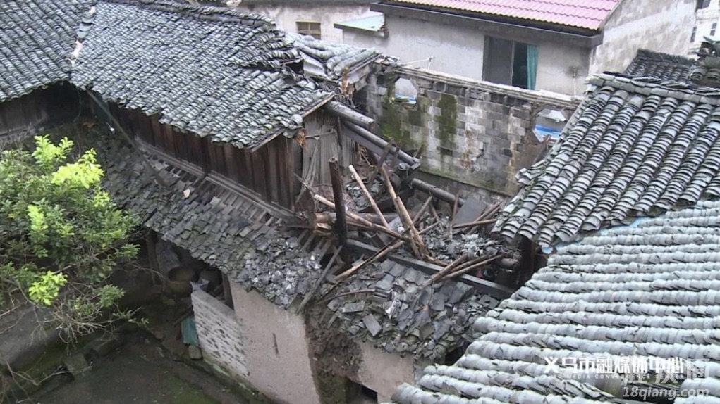 义乌大陈镇老房子屋顶突然坍塌 好在村民早已转移走了