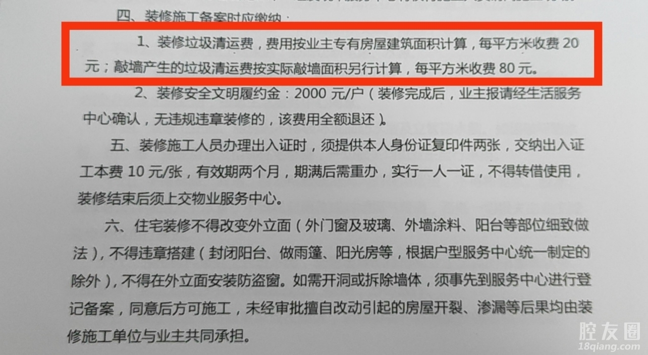房子准备装修,物业要求签订装修协议,里面有一条敲墙垃圾清运费要80一平,我外面找的装修公司说敲墙加清运也就80,然后物业说必须他们来清运而且敲墙另算,他们不来敲,外面单位不允许来清运,问一下,这个是否霸王条款,不合理
