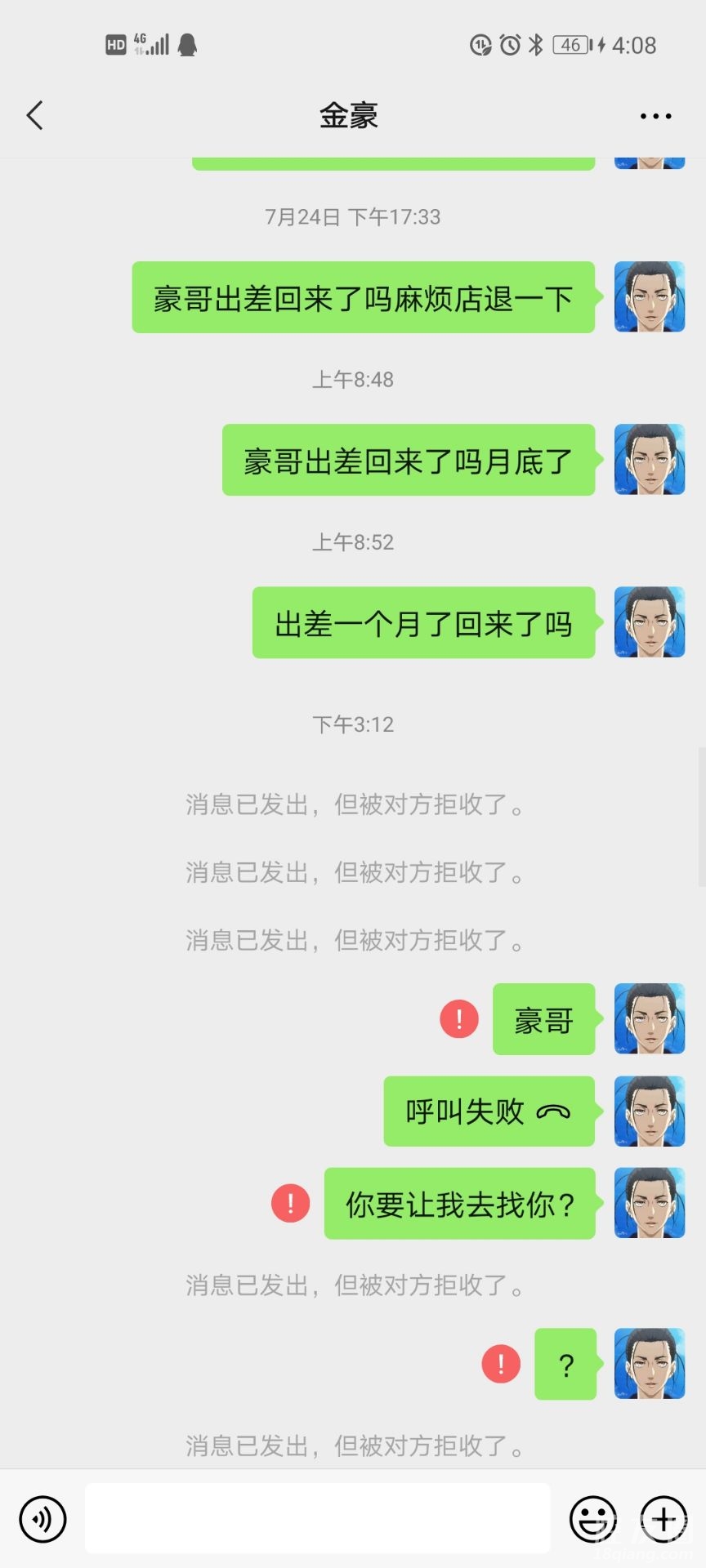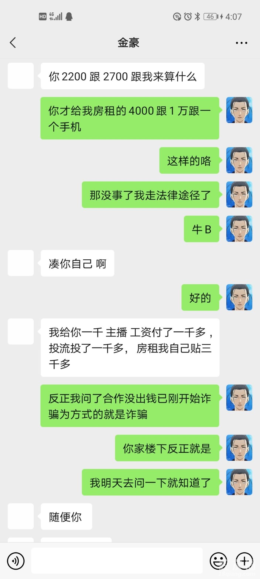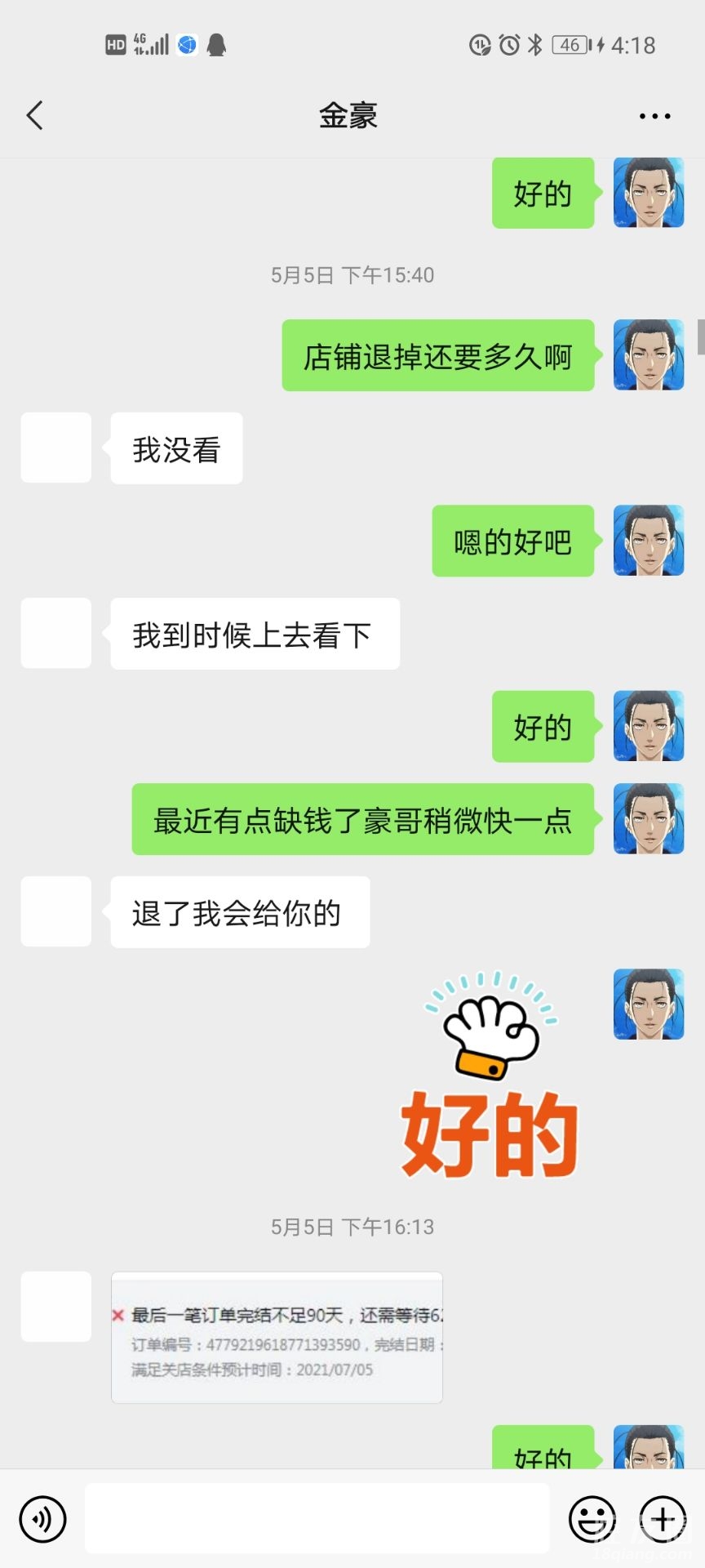 这个是之前聊的退店的截图说会还我的我想想么就几千块也不急的