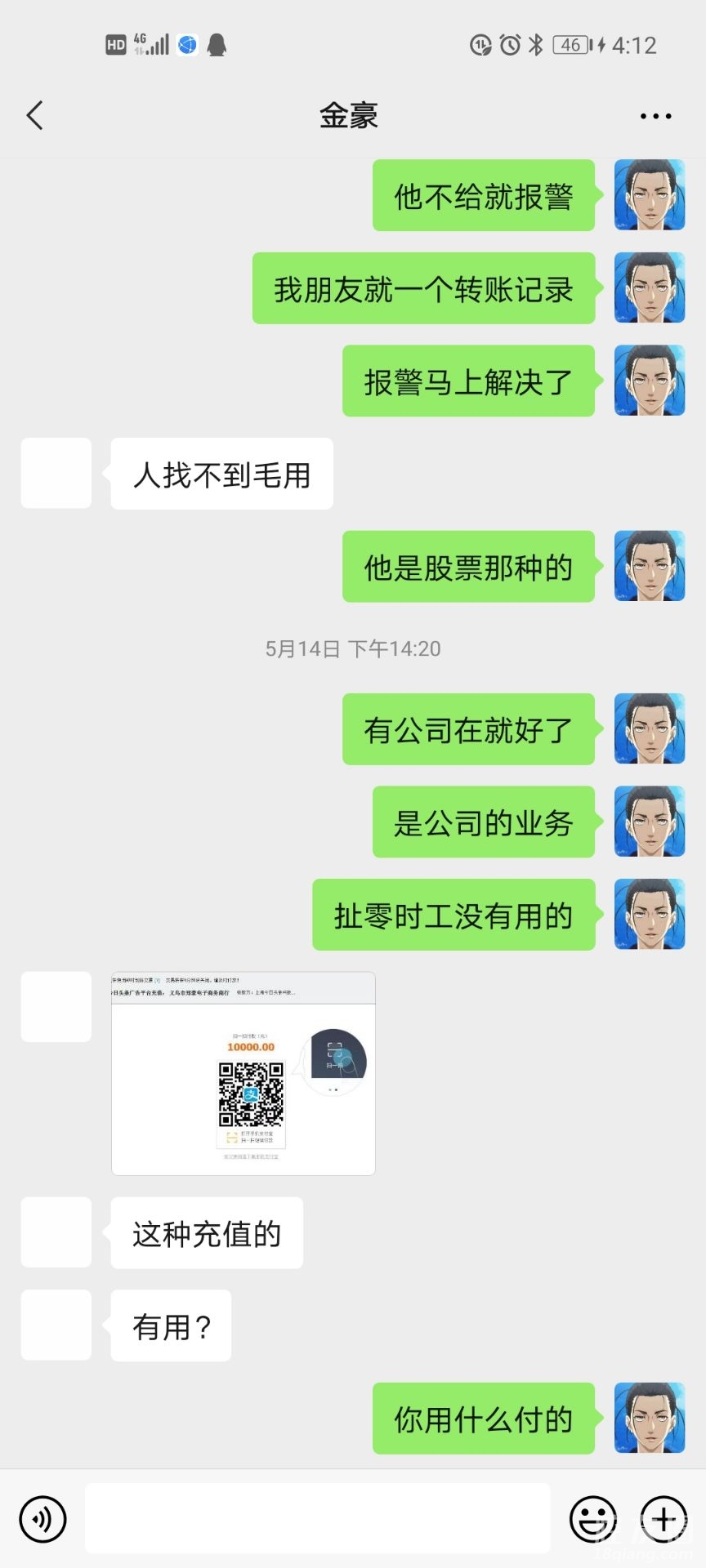 这是后面他说充值的一万块的结束了催了好几个月才给我严重怀疑这个钱他是自己拿走了然后拿我的钱跟我合作去充东西转账记录都没有的