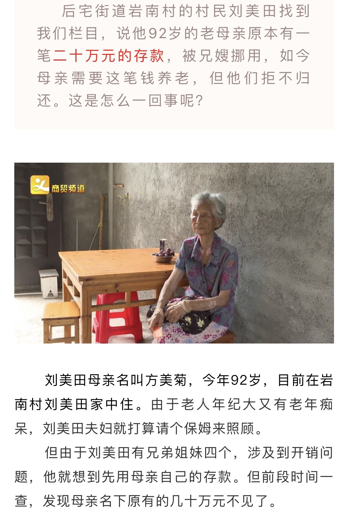 [义乌故事]后宅九旬老母20万养老金“不见”,小儿子疑被兄嫂独吞!大嫂:想分钱?等婆婆过世! [复制链接]