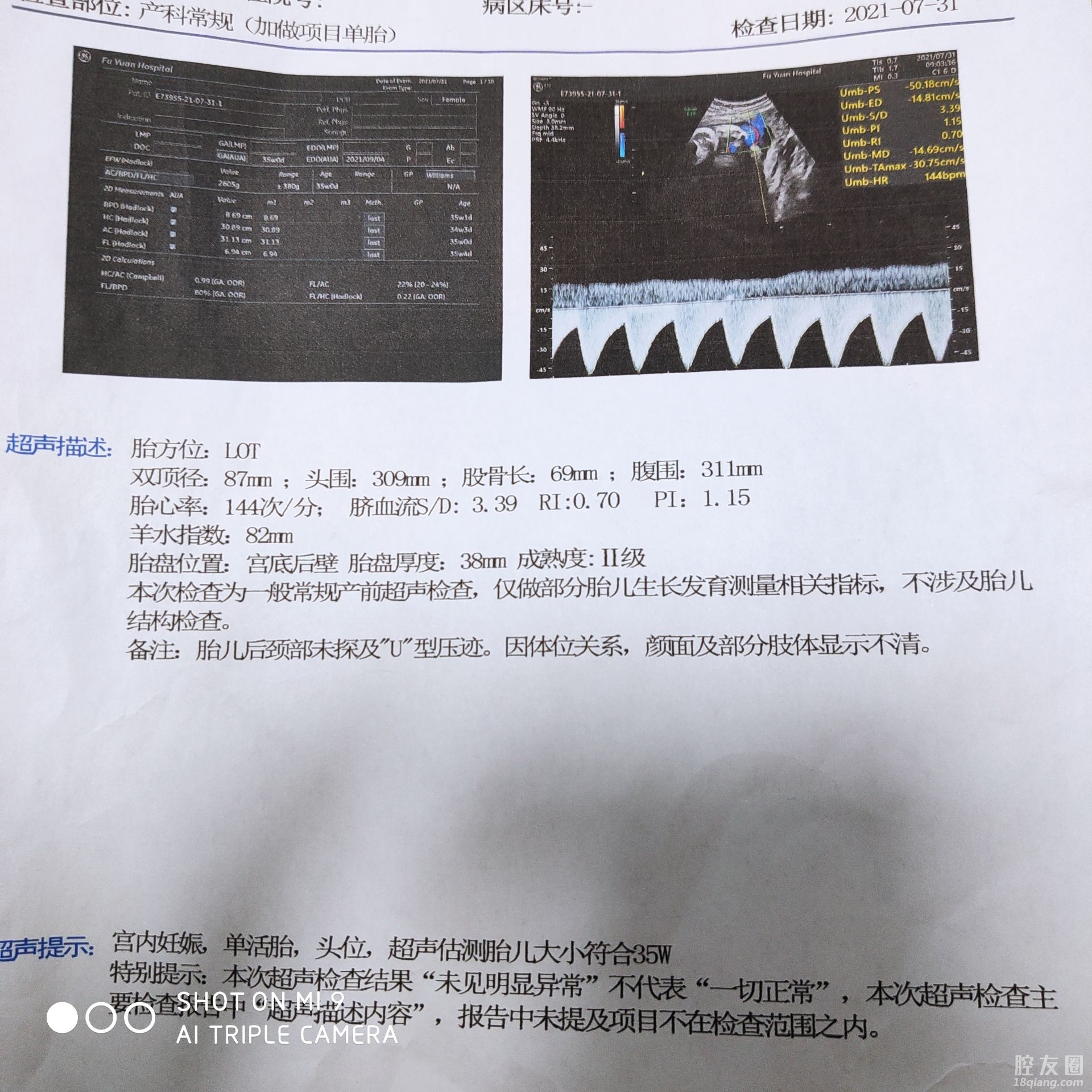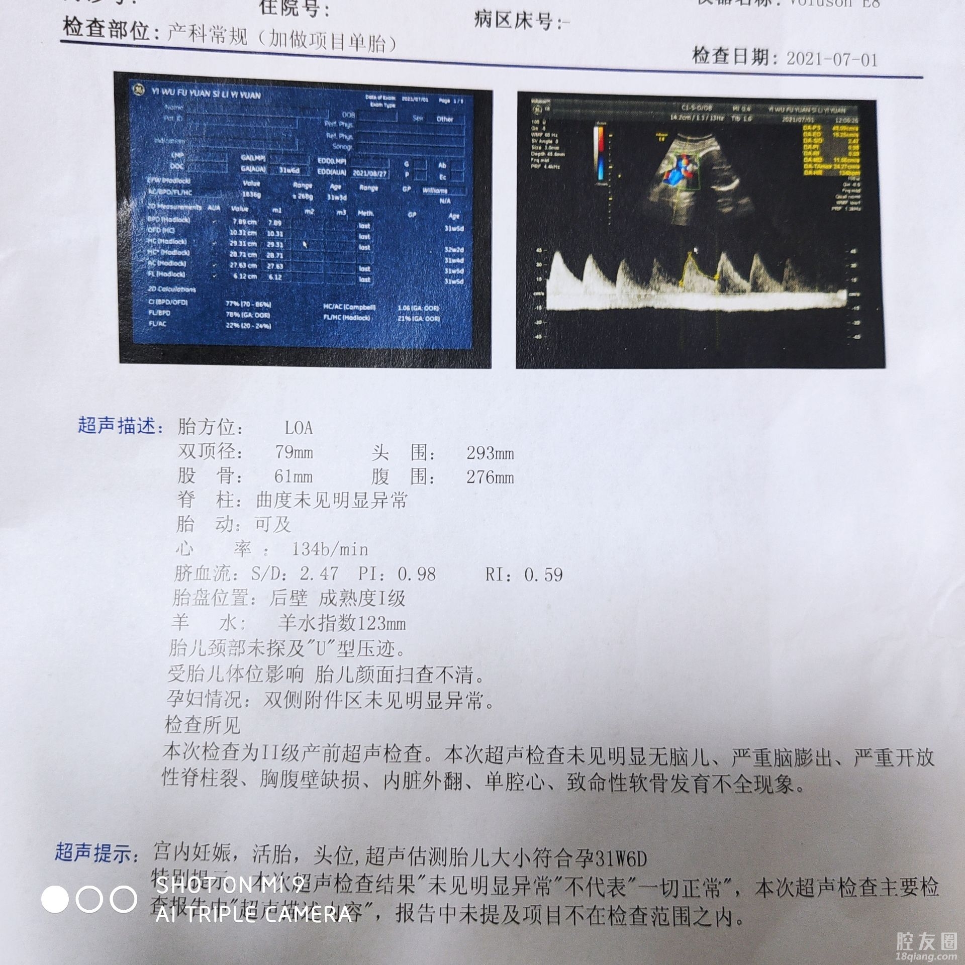 孕妈妈和已经生过小宝宝的,还有医生一起来看看这个B超单子,看看是男是女,第一张图是7月1日的B超照片,当时是31-32周,第二张图是7.31的B超图片,是34-35周!