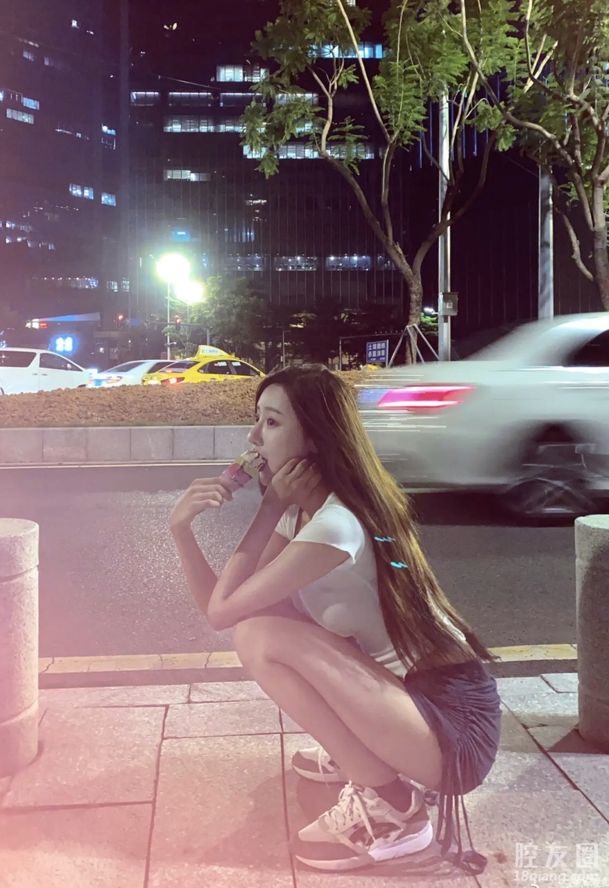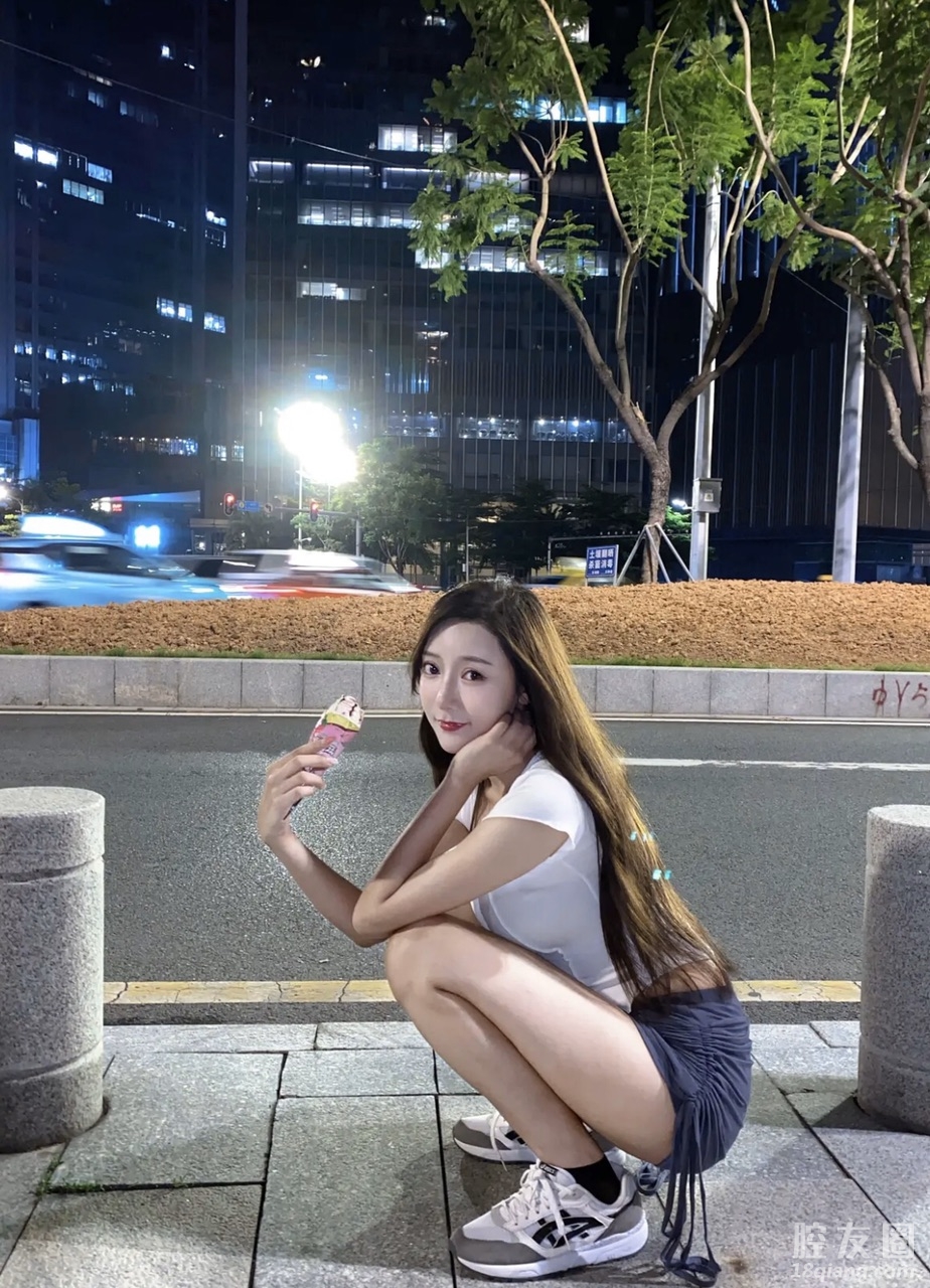 发现一枚在路灯下吃冰淇淋的小姑娘
