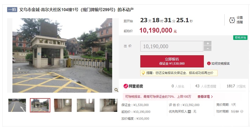 [义乌故事]起拍价超1000万!义乌一套别墅遭司法拍卖 [复制链接]
