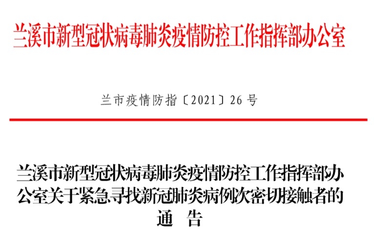 8月8日,金华兰溪发布通告,通报一新冠肺炎密接者轨迹,紧急寻找次密切接触者。全文如下: