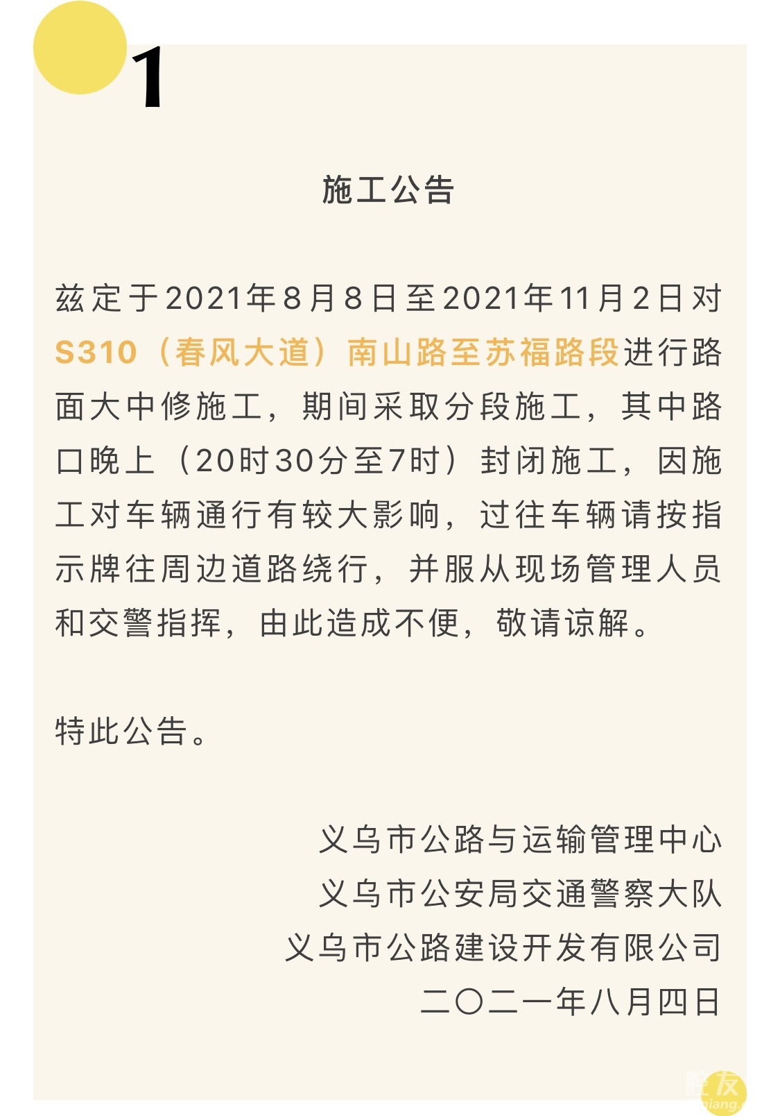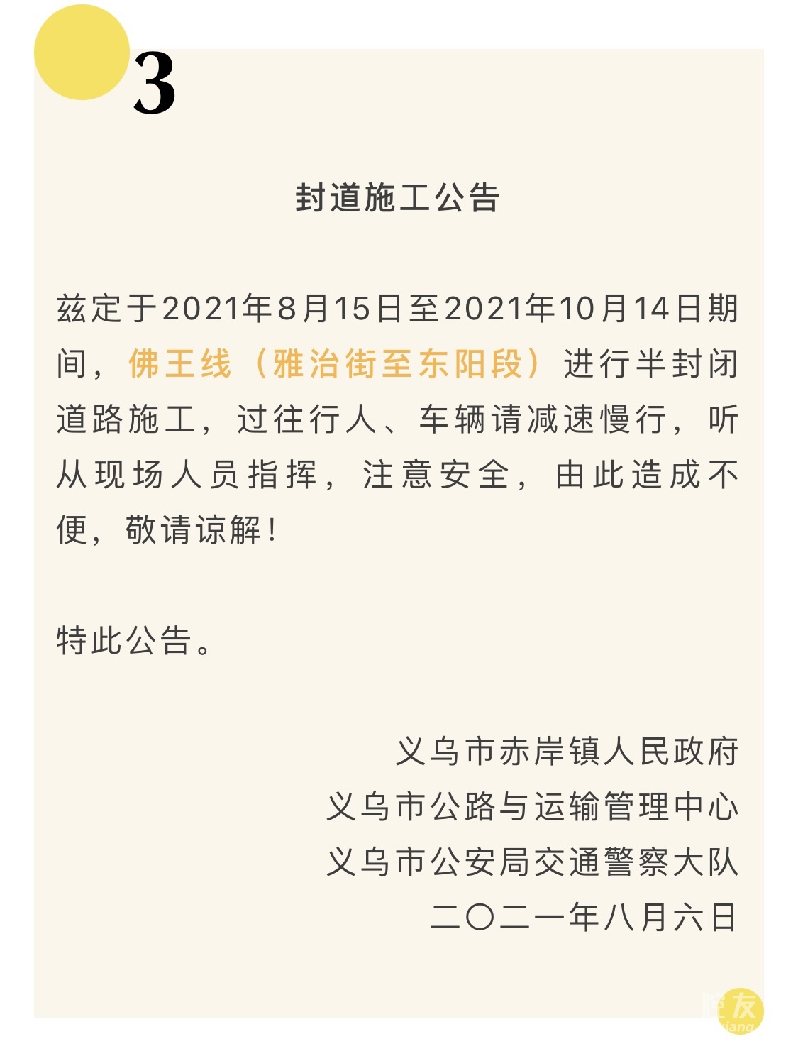 [义乌故事]绕行!义乌三个路段将施工,半封闭、全封闭、永久封闭…… [复制链接]