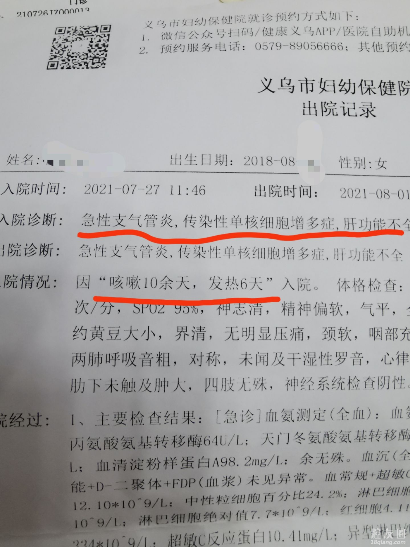 7月21号,去妇保想配点咳嗽药!说是低烧,然后发热门诊一堆检查,支气管炎,可能会出现传单一种病!配了五天的药,后复查!