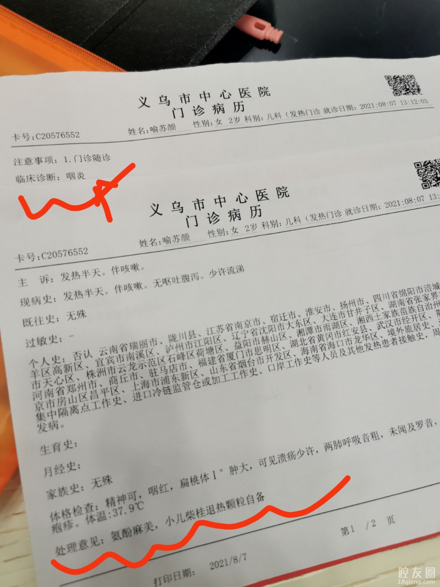 8月6号,开始发烧!复查的日子刚好又发烧了,低烧!我合计妇幼看的不放心,就跑中心医院急诊儿科!