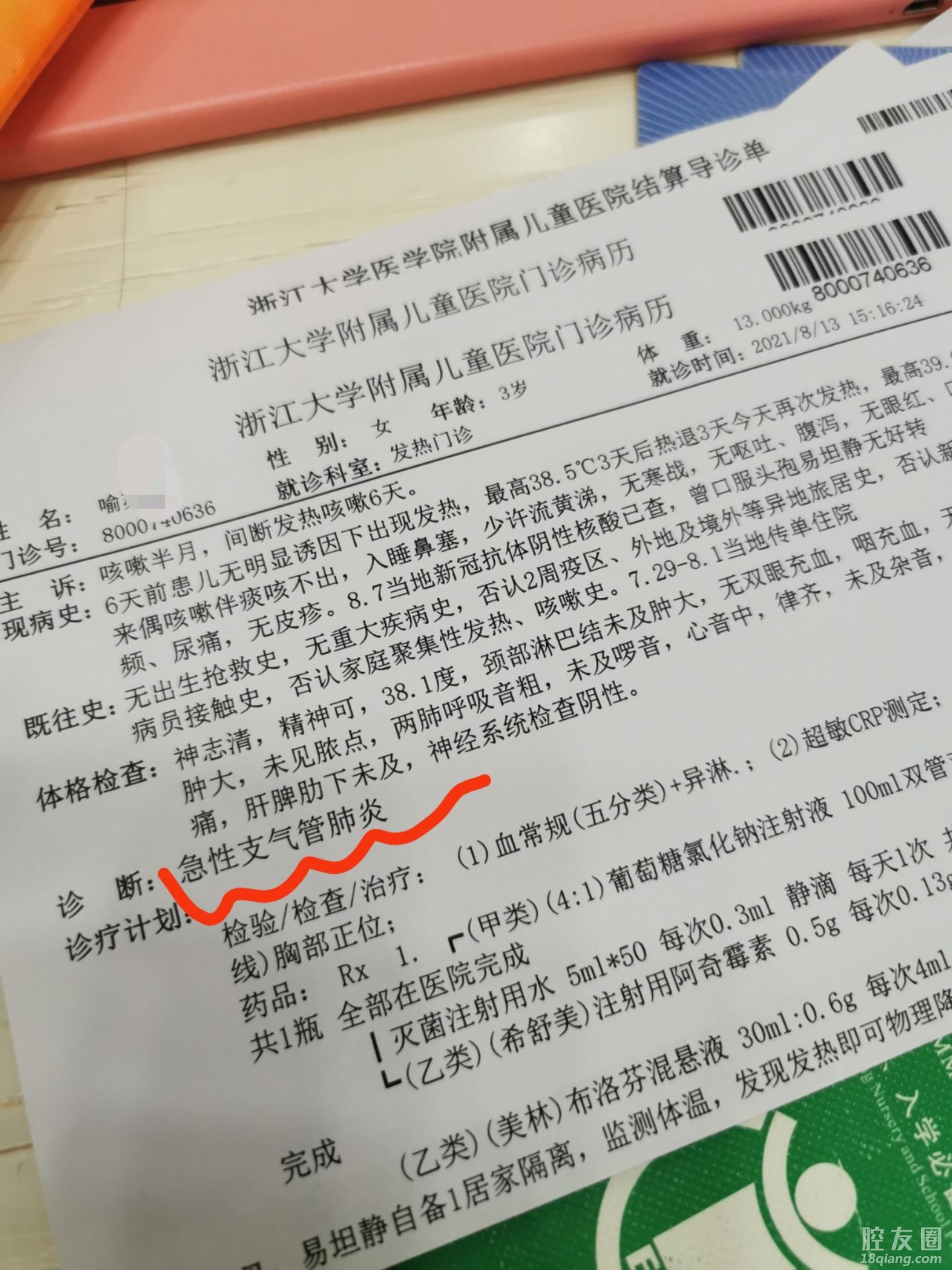 今天13号,中午突然高烧到40度!直接啥都没管去省儿保!支气管肺炎!
