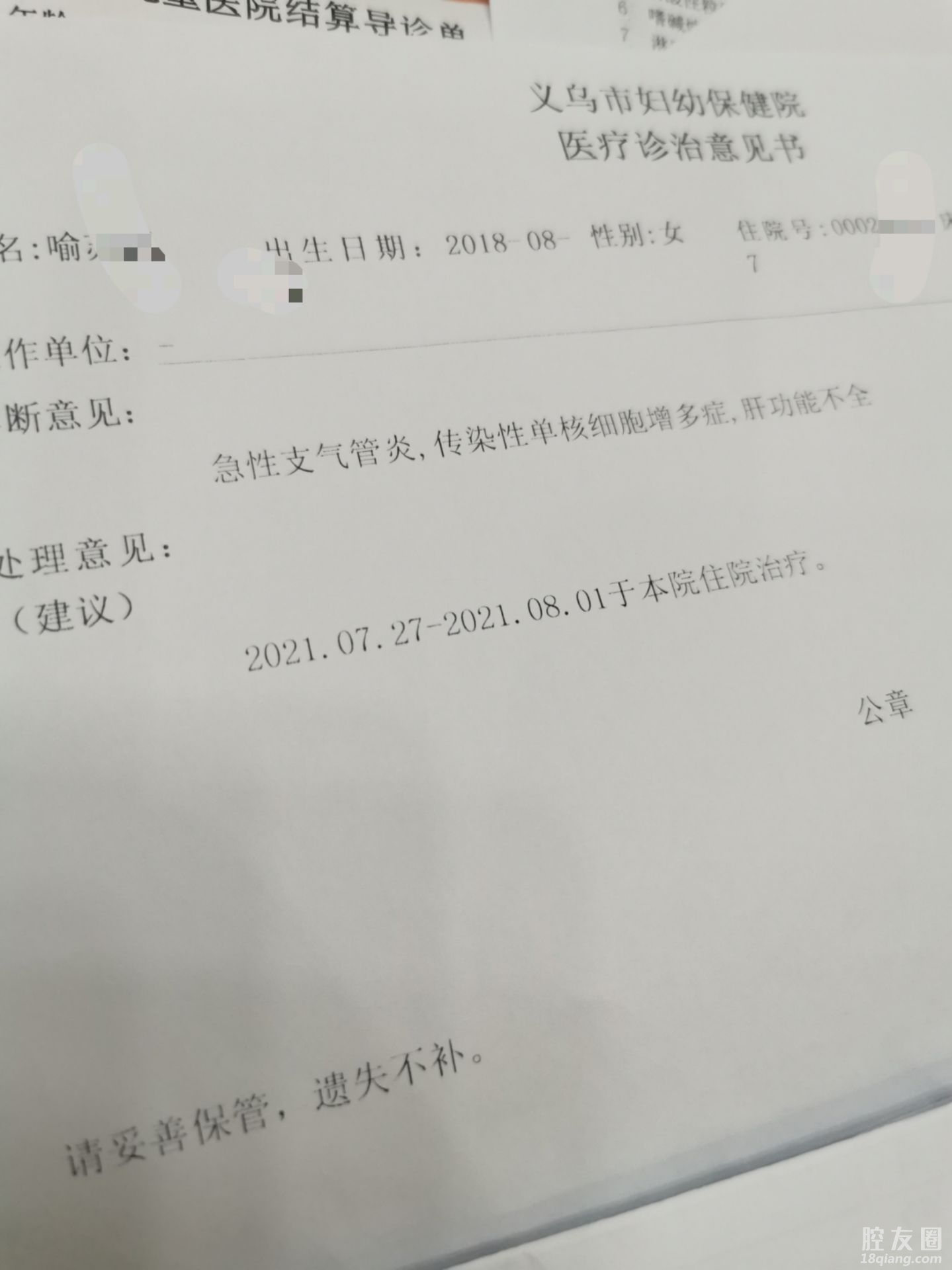 支气管炎,传单,肝功能不全,咽炎,支气管肺炎!一个月时间,看出了五种毛病!对错谁有知道呢!