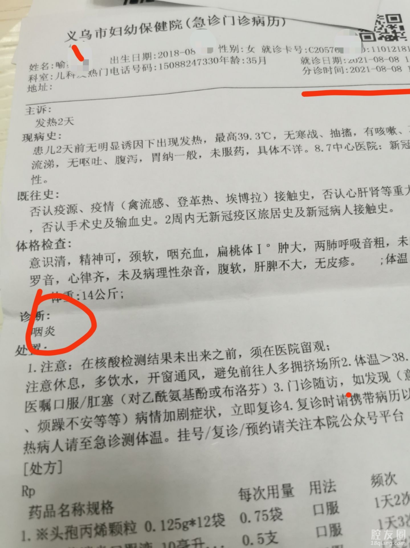 8号,还是烧,不放心,又去妇保看了下,开了咽炎的别的药回家!