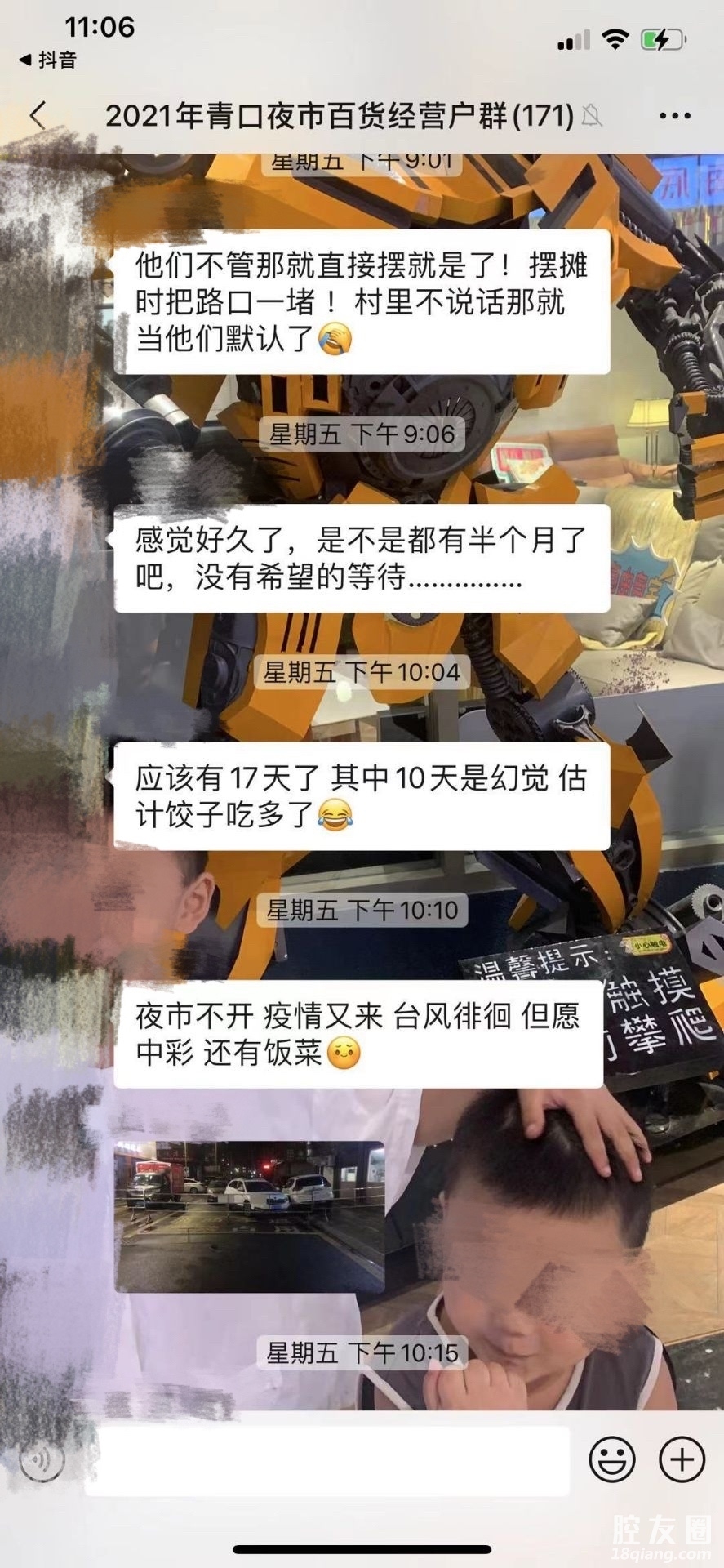 疫情期间,我们摊位也理解,支持配合国家的防控疫情工作。青口夜市从六号停业到现在领导一直不回复,别的夜市都可以围起来,出示健康码和测体温,正常营业,青口夜市为何不可以我们投标一年几万块钱,一天不收入,我们这些摊位怎么办,专业摆摊混口饭吃,为何青口领导群里回复都不回复,装作看不见,如果不能摆,那为何义乌,东阳那么多夜市都可以营业,那么多摊位哪个不要吃不要喝,望有关领导关注一下,疫情期间围起来,大家辛苦一下,帮帮我们