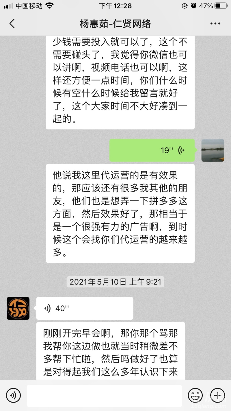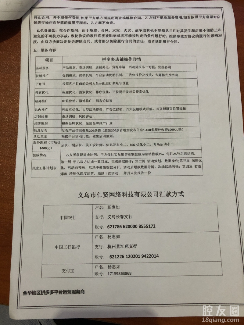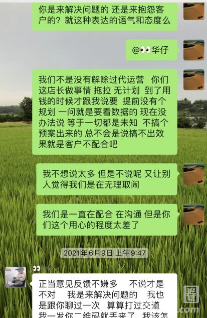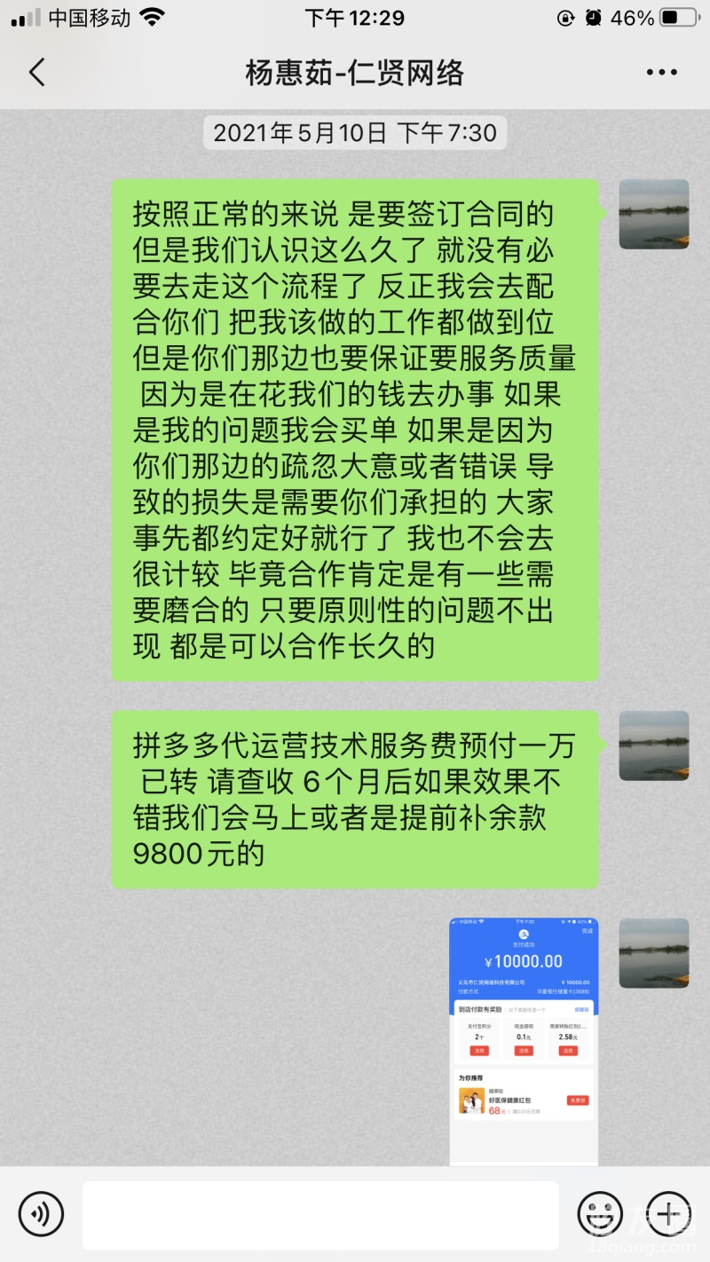 杨慧如,女,江西人,87年出生,系义乌贤仁网络科技有限公司老板,5年前我们认识至今,她在多家公司任过职,现在创立了自己的代运营公司。我先后在她这里代运营过多次,都没有效果,我比较重情义,把她当朋友,没有去说什么,今年5月的时候她迫于业绩压力,微信上推销她们公司的代运营业务,想办法交钱给他们去代运营,虽然我知道十个代运营九个坑,但是出于对杨慧如的信任,我还是不死心,又一次上了贼船。代运营的平台不同,但结局是惊人的相似:他们做不出效果,只知道拼命的让我们烧钱,没钱烧了就说是客户不配合,做事拖拉,上午能搞好的事情,非要拖到下午或者第二天,想办法耗我们的时间,耗到我们精疲力尽,没有心情跟他们联系了,他们也就啥也不做了,慢慢就等服务时间到期。运营店长自己不做计划,想到要烧多少钱就直接要钱,不提前规划,因为不是烧他们自己的钱,随便花,现在找他们退钱,百般抵赖说是我同意让他们乱花钱的,运营公司并不能包装赚钱,那刚开始怎么不说清楚,这个不一定能赚钱的,现在单子没出几个就开始这样说了。这种骗子运营公司就应该被曝光,以免更多的人被骗上当。
