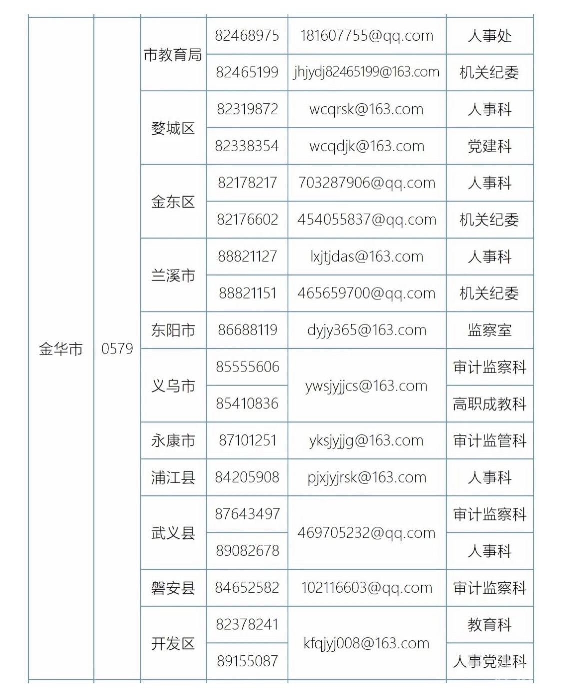 据浙江教育政务新媒体“教育之江”微信公众号公布的信息,金华各县(市、区)的举报电话、电子邮箱如下——