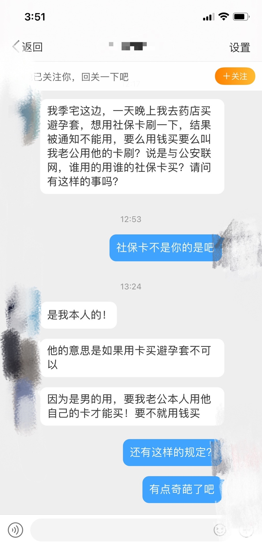 去药店买避孕套,结果药店说不行,买避孕套要使用她老公的社保卡,因为避孕套是男性使用,不能使用她本人的社保卡购买,社保卡有这个规定吗?