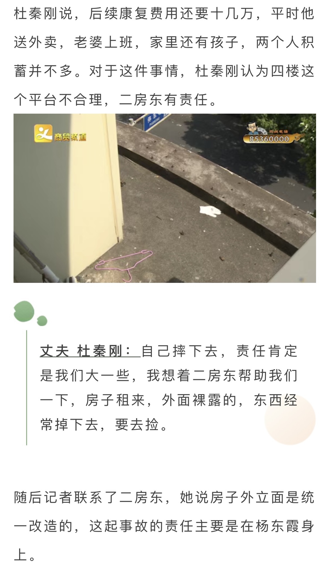 义乌一女子为收衣服,摔下四楼成重伤,欲向房东索赔……