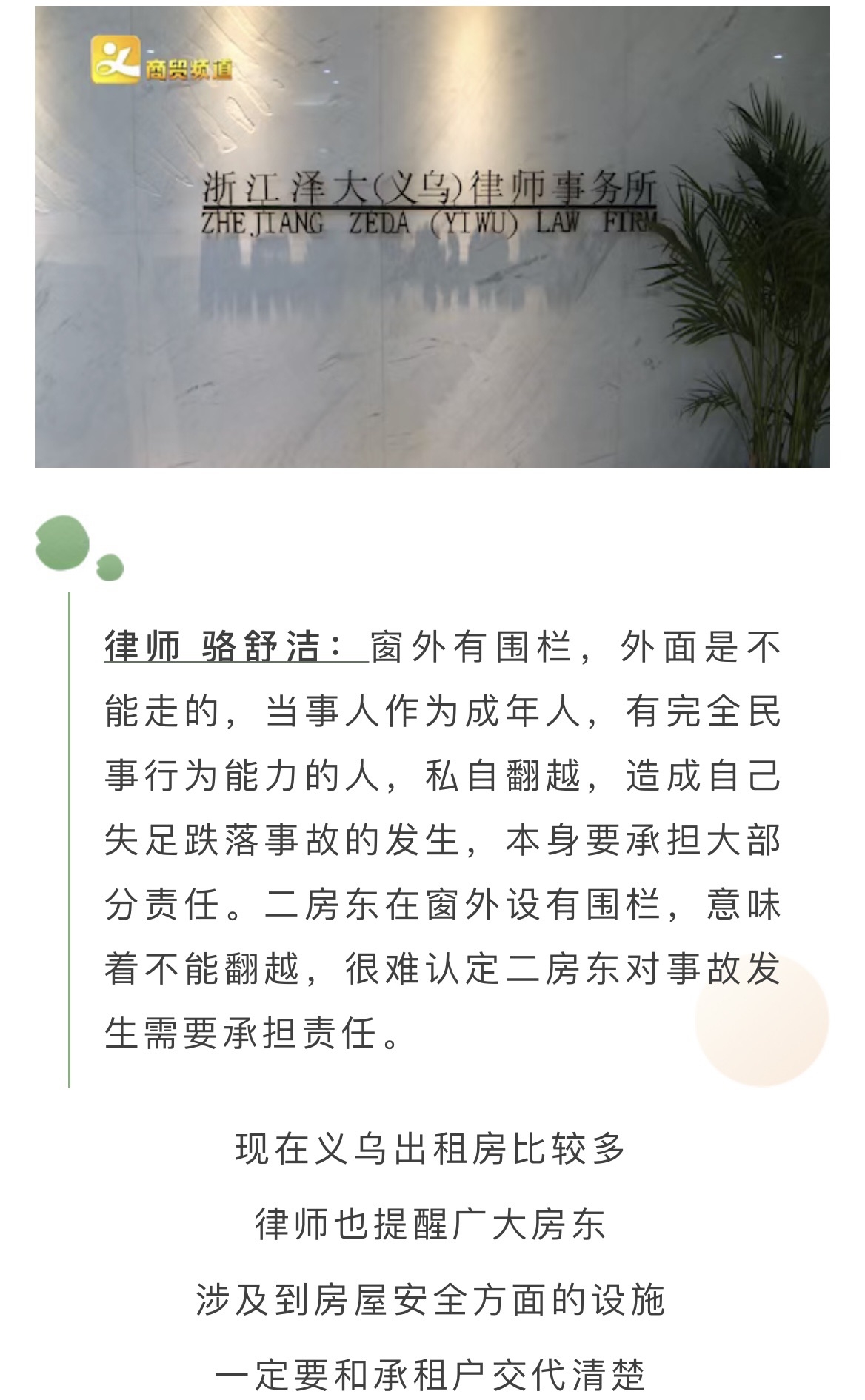[义乌故事]义乌一女子为收衣服,摔下四楼成重伤,欲向房东索赔…… [复制链接]