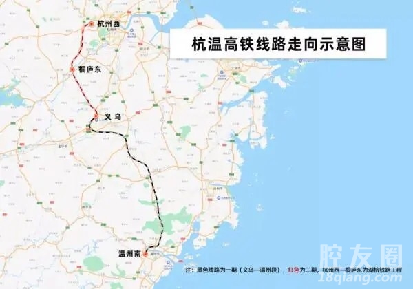杭温高铁一期工程全长201公里,桥隧占比94.39%,沿线设义乌、横店、磐安、仙居、楠溪江、永嘉及温州南等7个车站,线路设计时速350公里,建设工期计划为4年。杭温高铁二期项目则是自湖杭铁路桐庐东站引出,经桐庐、浦江、义乌三县(市),接入沪昆高铁义乌站,新建正线59公里,设计时速350公里,新建桐庐东、浦江2座车站,全线桥隧占比达94.5%。已于去年年底开工建设,计划“十四五”期间建成。