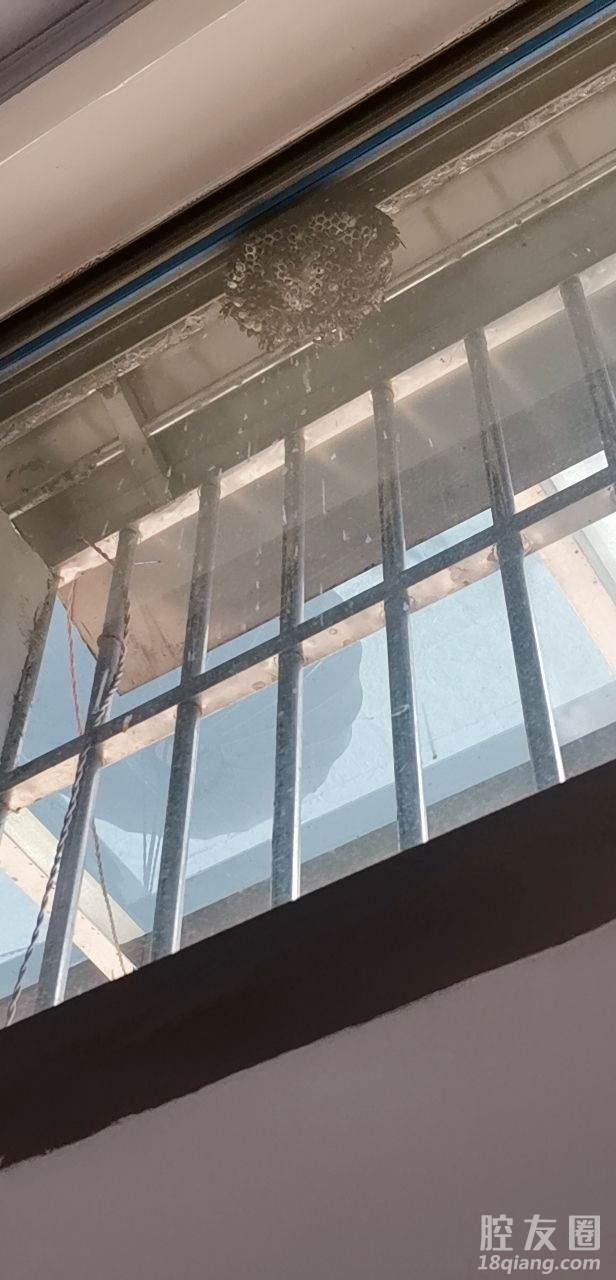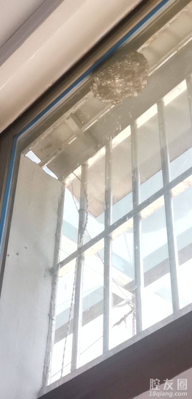 今天才看到窗户上有一个蜂窝,不知道怎么好,自己又不敢去搞。求帮助。