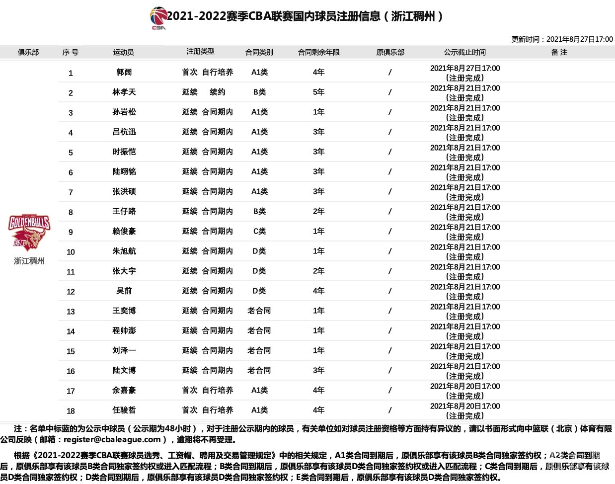 CBA新赛季注册信息# 2021-2022赛 ..