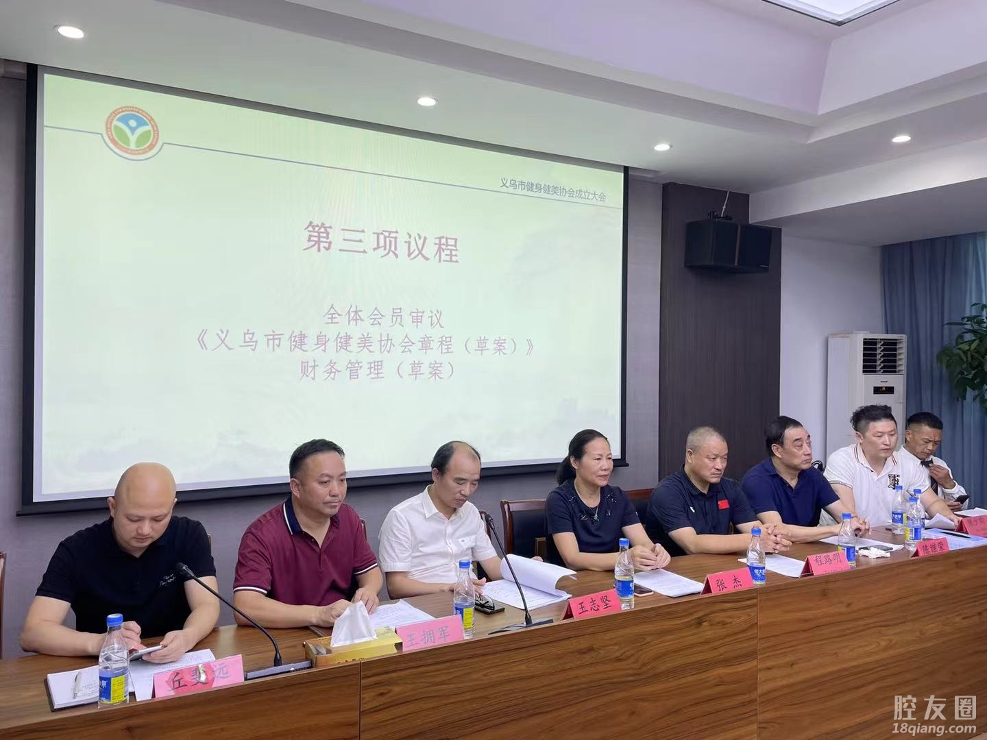会议审议通过了《义乌健身健美协会章程(草案)》《义乌市健身健美协会财务管理办法(草案)》,并选举产生了协会第一届理事会成员和协会会长。