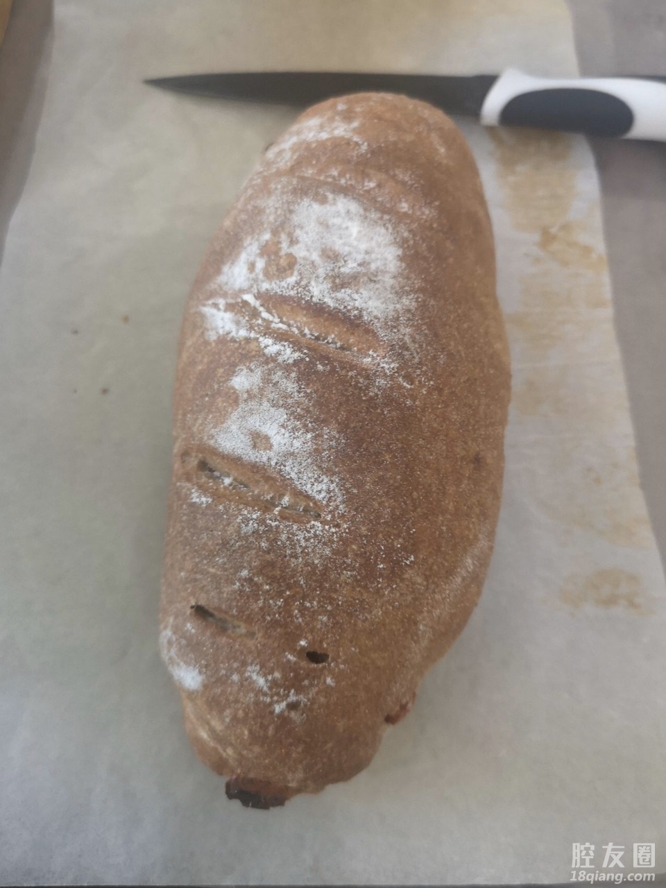 [义乌故事]第一次做的全麦欧包,家里没有面包机,低温发酵了一夜 [复制链接]