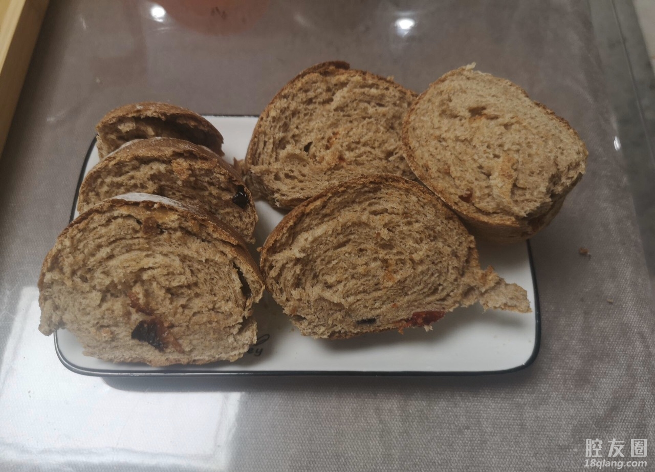 第一次做的全麦欧包,家里没有面包机,低温发酵了一夜,里面包了干果,吃起来外脆里软。还不错,给自己点赞