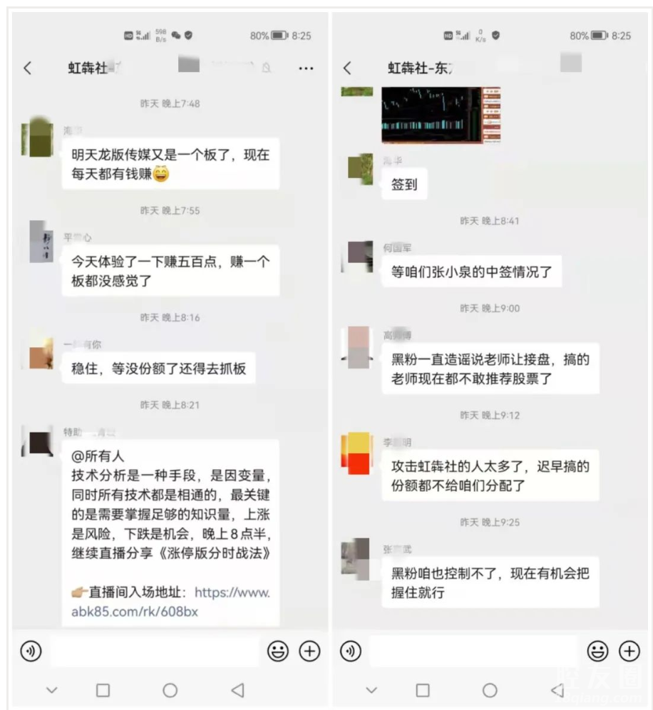 据了解,2021年7月底,方某在家中刷视频,看到一个炒股票的教导视频,这让平时就爱炒点小股的方某有些心动,于是便主动联系了对方。随后,方某被拉入一个投资咨询的企业微信群组,里面有几个“老师”每天都会分享一些股票知识,并针对炒股问题进行授课。