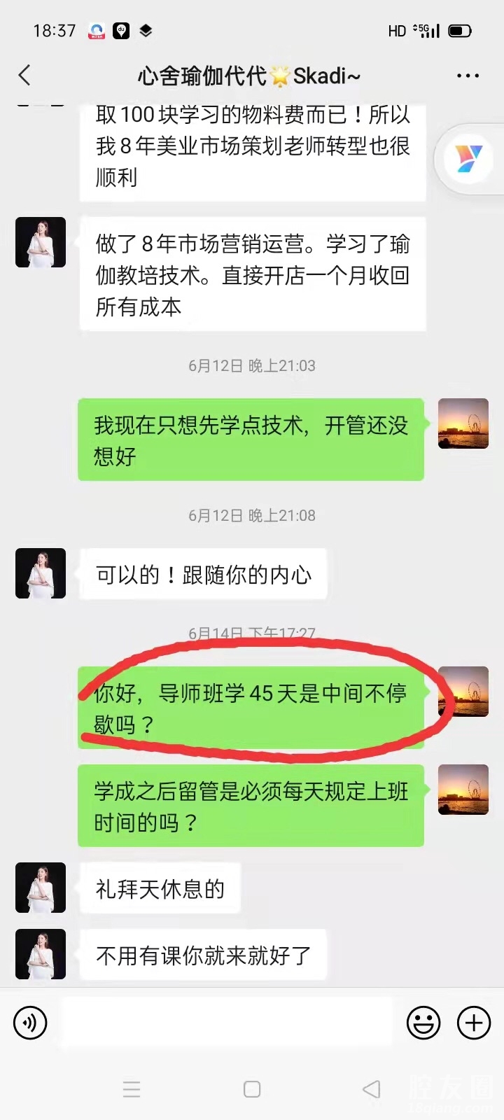 报名花了9800元去学瑜伽教培班。说好教培一期下来会抵三年大课的技术。然而学到的还不如大课上所学的。