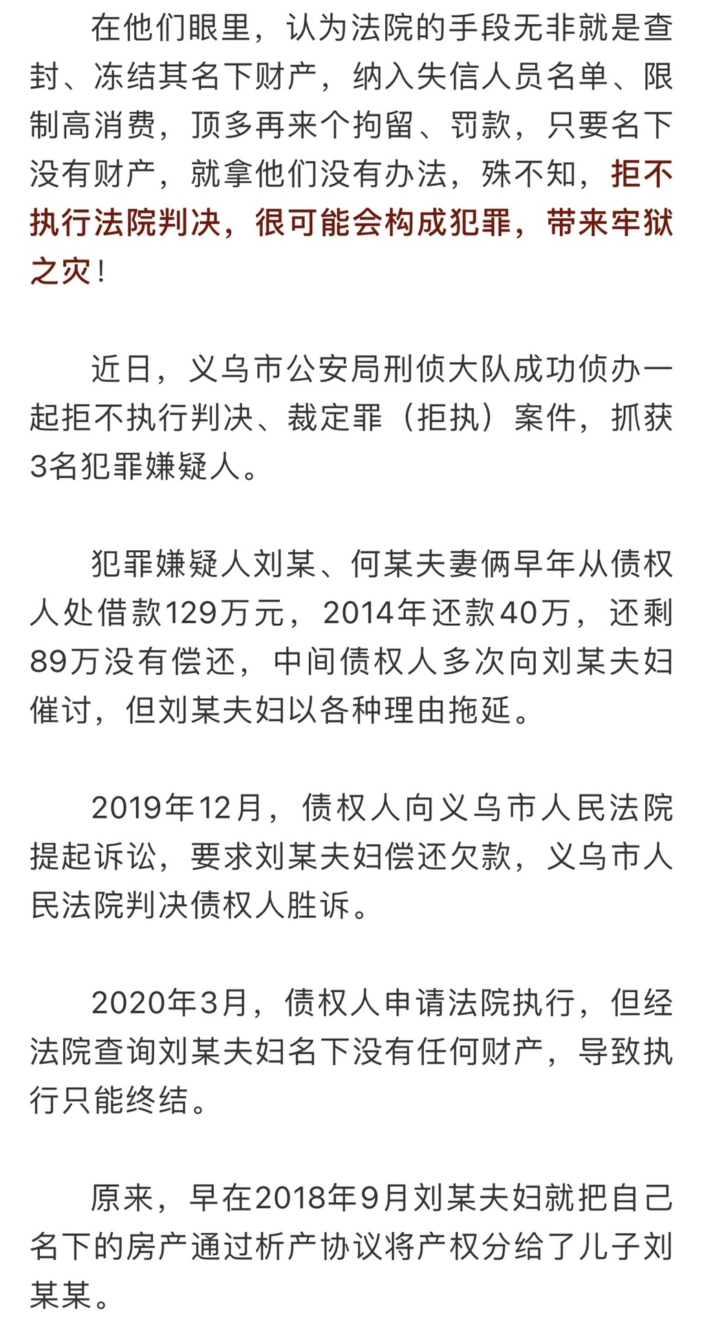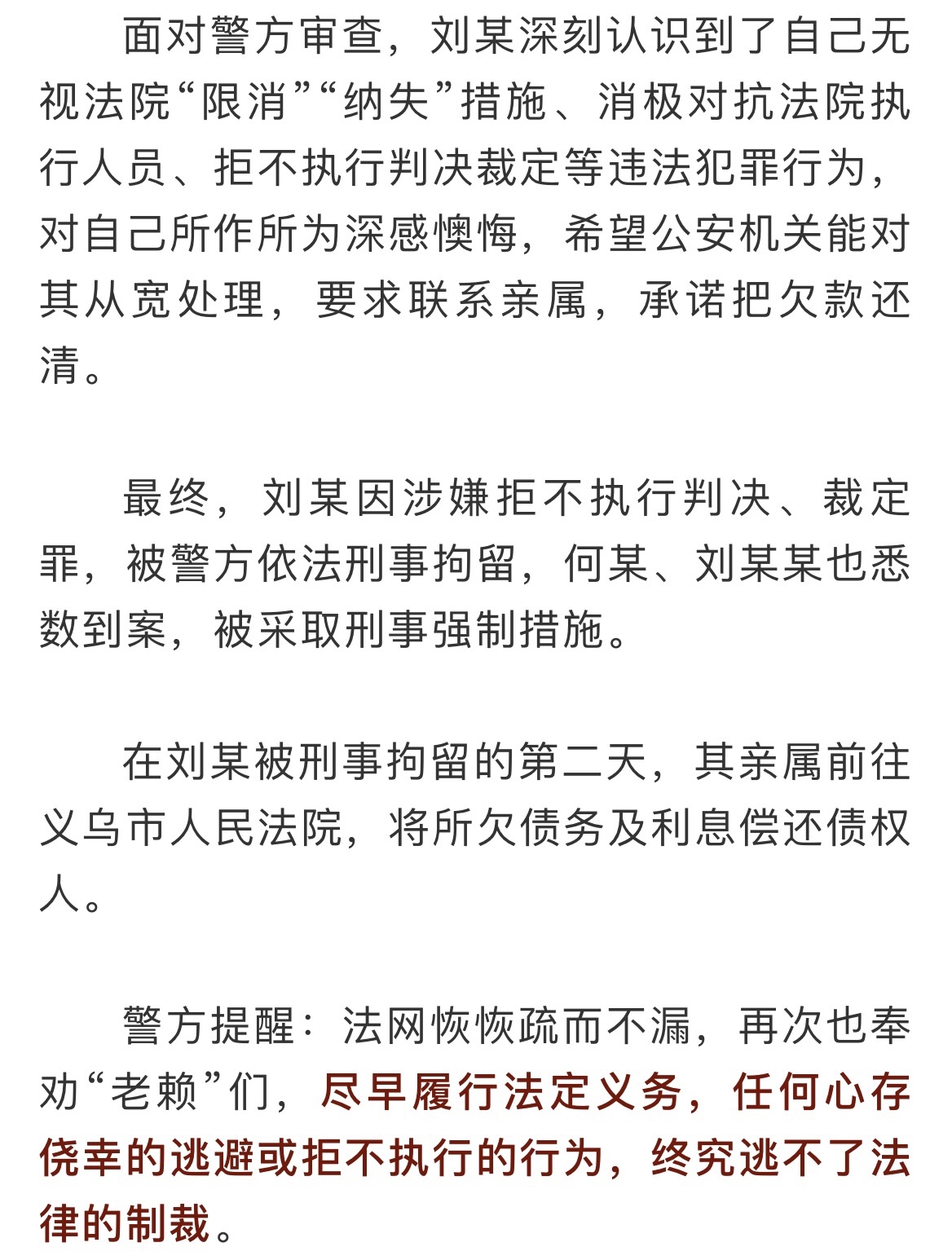 一家三口全部被抓!义乌警方提醒:拒不执行?后果严重!