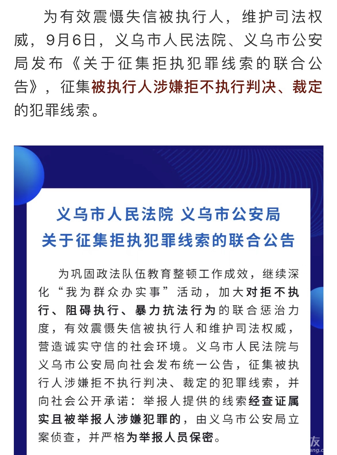 [义乌故事]欠债不还,一家三口全部被抓!拒不执行,后果严重! [复制链接]