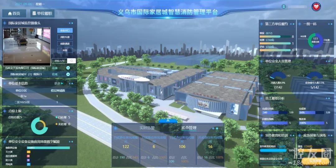 “配电箱末端温度遥感、水泵压力监测、设施设备状态判断、巡更情况采集,维保数据实时上传……”义乌国际家居城智慧消防系统利用物联网、虚拟现实、互联网+等最新技术融合大数据云计算平台等专业应用,将各类设施设备检测指标、管理人员巡更情况、设施设备维保情况以图表形式展现并实时更新,切实构筑消防安全精细化、便捷化、智能化管理体系。