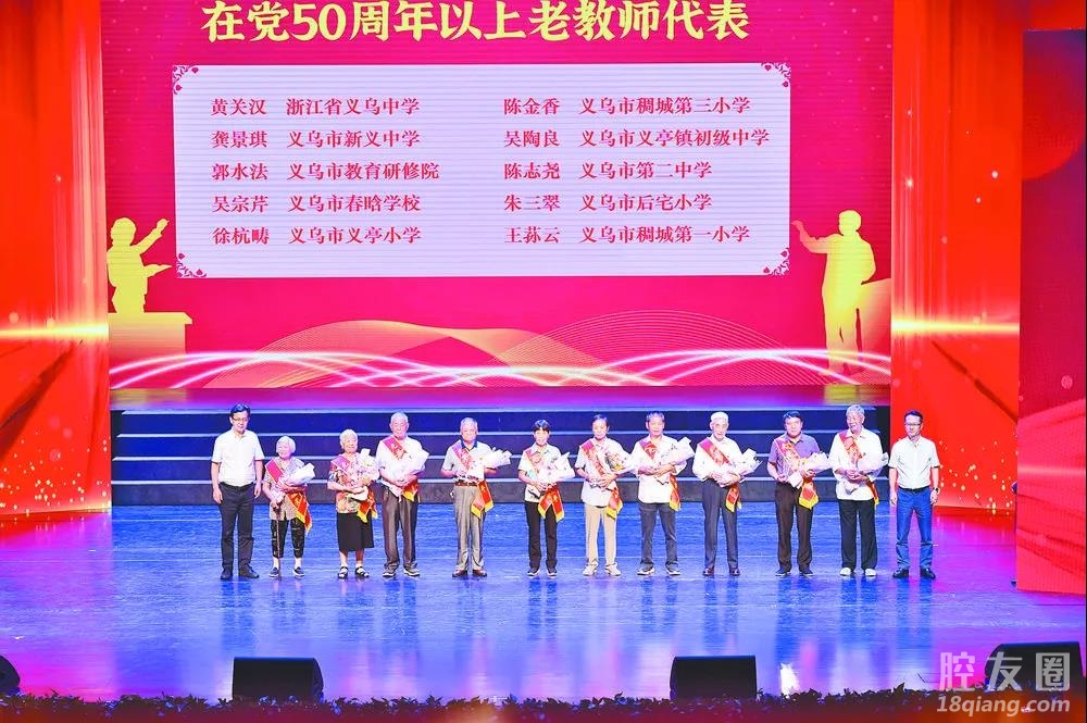 台上一个个优秀老师的故事,触动着现场观众的情怀。沸腾的掌声中,光荣在党50年以上老教师代表、省教坛新秀和省正高级教师,金华市及义乌市教坛新秀、最美教师、师德标兵和师德先进个人等优秀教师代表上台接受市领导颁奖。