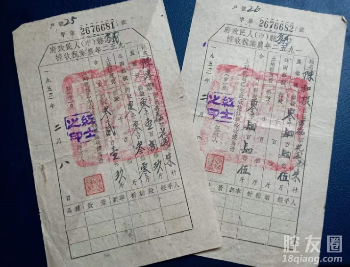 68年前,义乌赤磊区花园乡农业的税收据!大家见过吗?