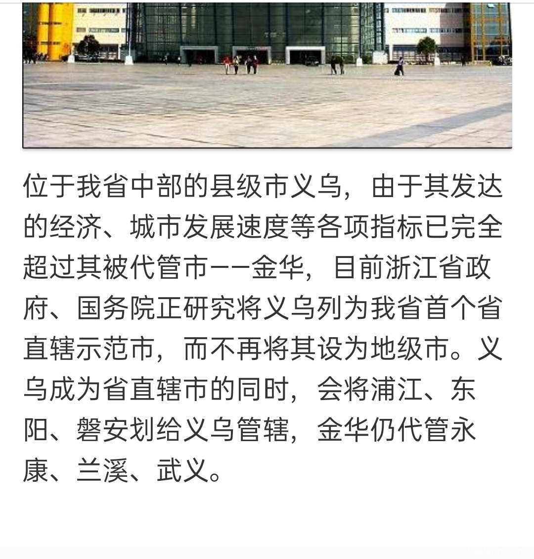 说义乌会成为浙江省首个直辖市,不知道是真还是假哦