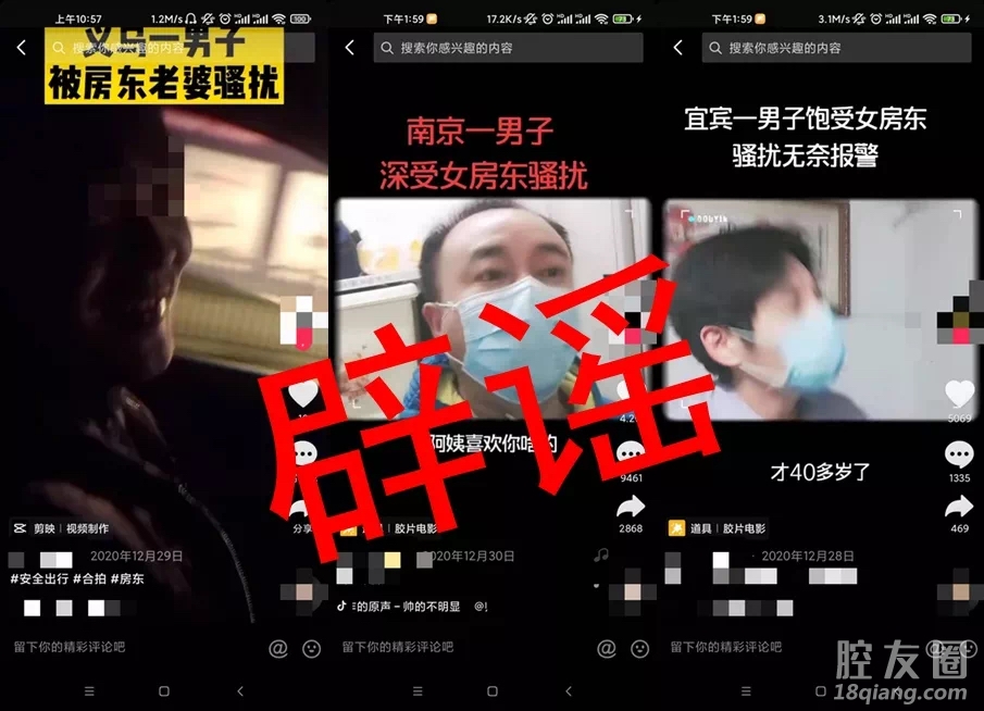 近日,网络上出现标题为“江西一男子不堪义乌女房东骚扰,决定连夜搬家”“金华一男子不堪义乌女房东骚扰,决定连夜搬家”“山东一男子不堪义乌女房东骚扰,决定连夜搬家”的多个短视频,被网友大量点赞转发。