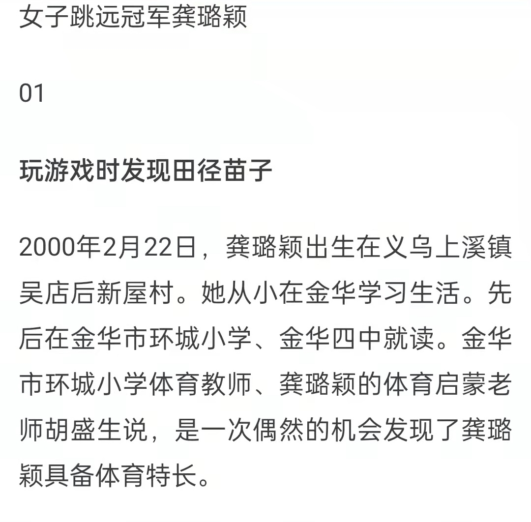 9月24日,在第十四届全运会田径项目女子跳远决赛的比赛中,义乌籍运动员龚璐颖夺得金牌!