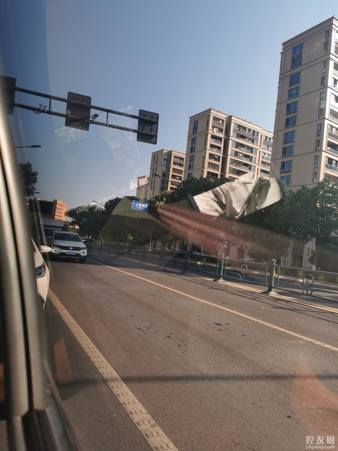 等红灯为了不被太阳晒到,就停在离停车线位置这么远,最少还有四辆车可以停。北苑路和春晗路红绿灯处。