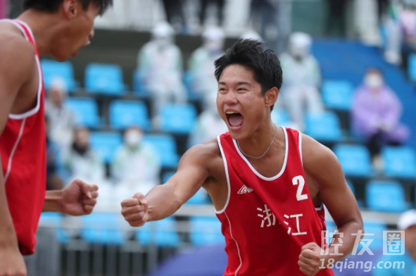 近日,第十四届全运会青年组沙滩排球赛决赛在陕西省渭南市举行。在沙滩排球项目男子17岁以下组金牌赛中,我们见到了熟悉的身影。义乌三中在读生高三(1)班洪伟强与方易组合的浙江青年一队以2比0战胜江苏青年二队组合,夺得冠军。