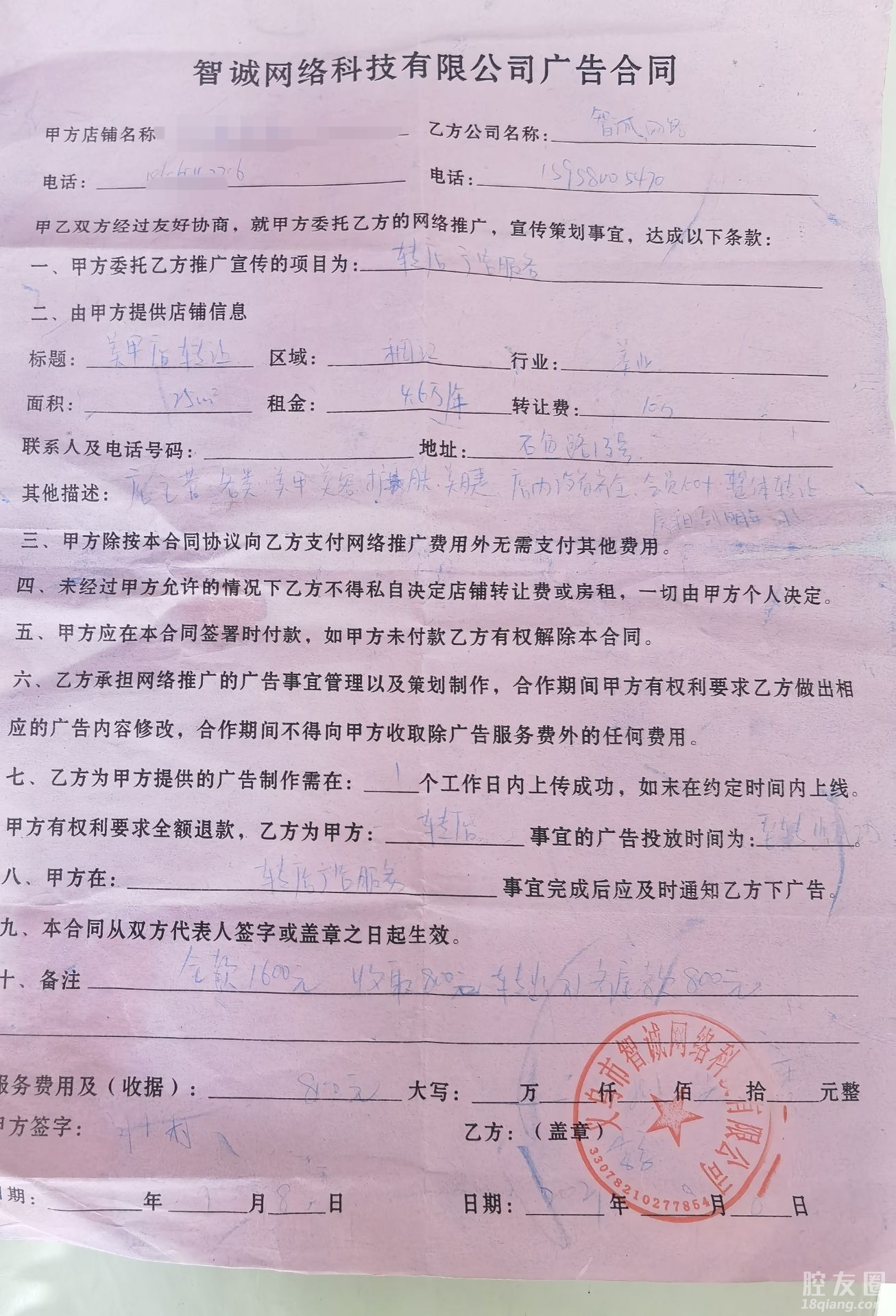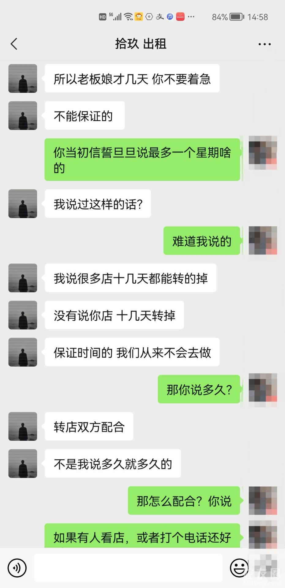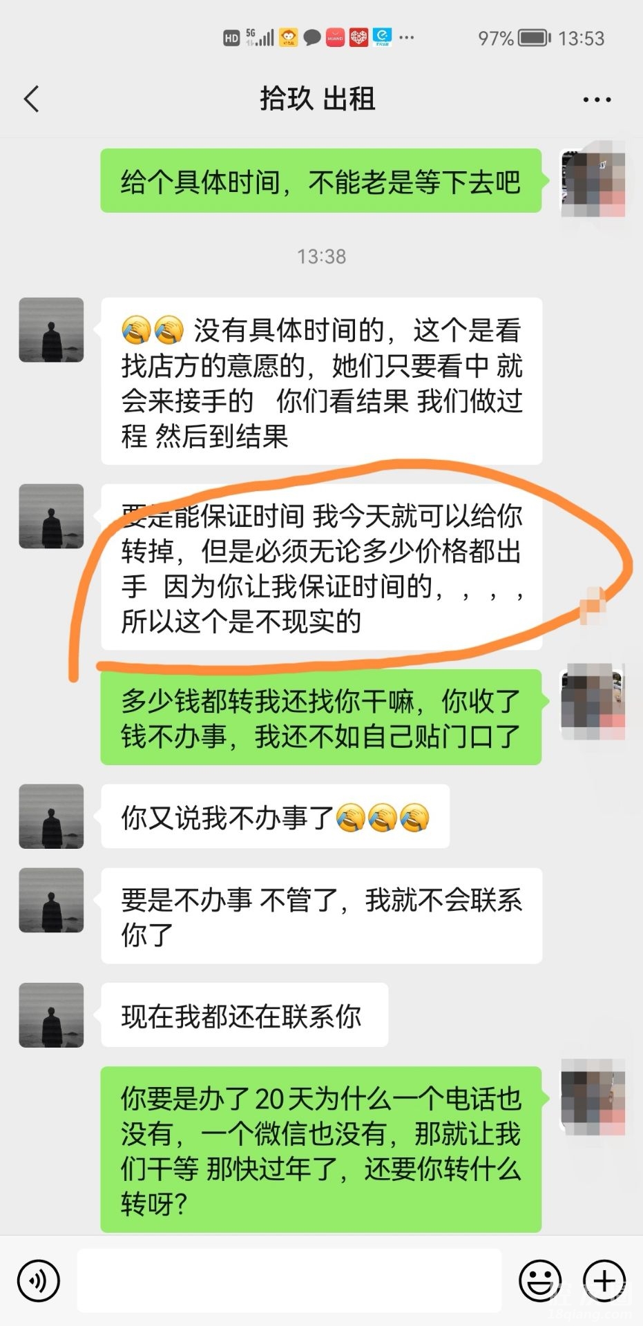 本想着通过智*网络李*店面可以成功转出去的,因为颈椎的问题想让此人帮忙转下,2021年9.8号跟义乌叫智*公司的合作,转的钱先付了800块钱,结果今天9.29号了一点动静都没有,没有人看店面没有电话也没有说有意向加微信聊的,本想说问下怎么回事的,然后现在就说我价格问题,如果太高当初接手的时候怎么不说,当初还说我这个店多好转,现在都过了20天了,现在说价格高要是什么价格都可以马上给你转出去,意思我还要倒贴钱转出去咯,如果这样子转我还找他们智诚公司干嘛,我自己贴门口转了,之前还有广告不过也是靠最后面的,现在就是58赶集网站都没有我的广告信息,就是一拖再拖,各种借口意思说我和你聊还不如去找客户了,一会又说自己手机没电了,让我等说什么现在才过去几天又不是几个月一年两年,我们租房子才租一年啊现在过了大半年了,当初不说几天就可以转出去我也会做好心里准备的啊!还让我们等,难道要等到期吗?这种靠忽悠客户的公司,大家千万要注意