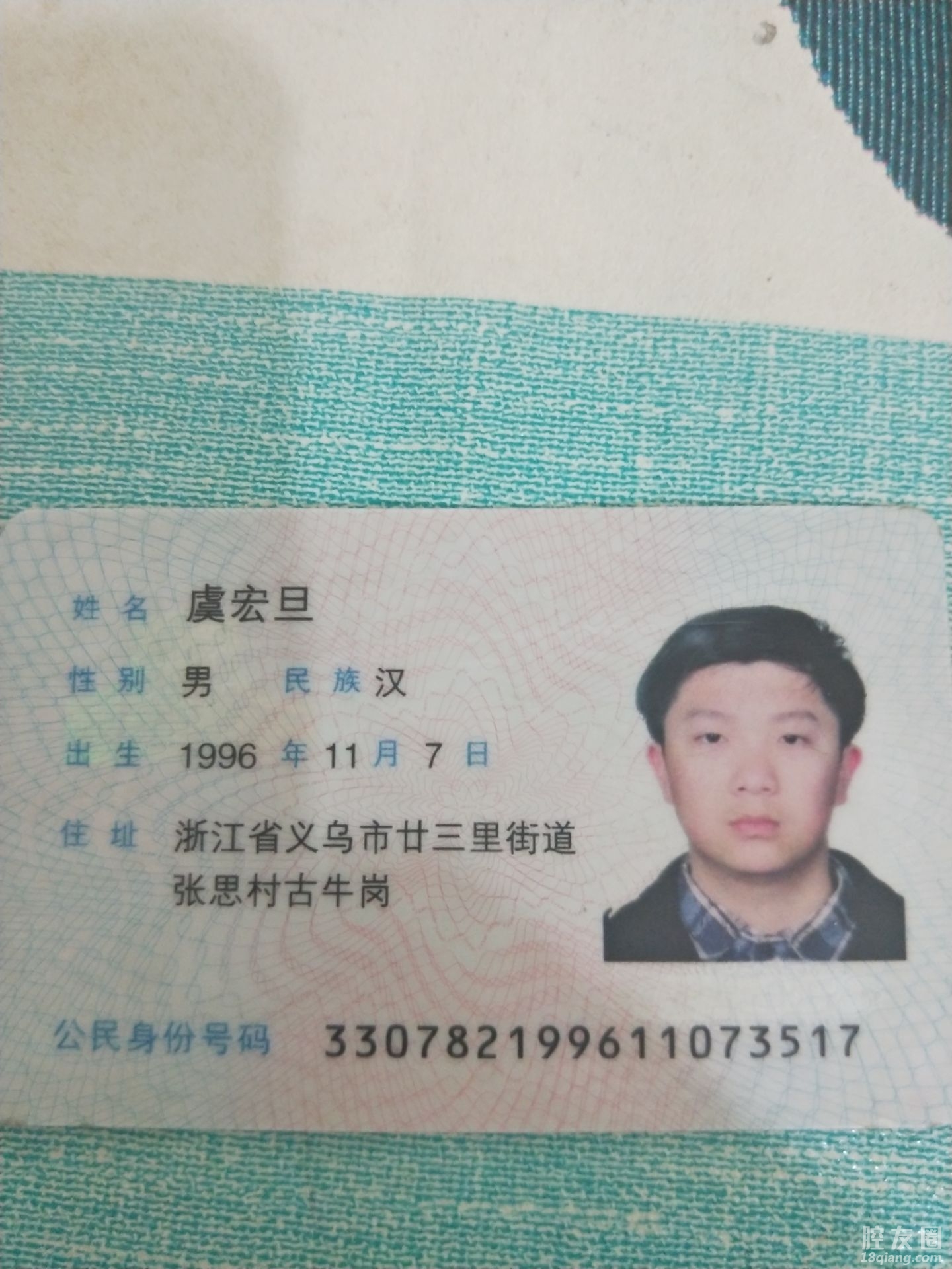 在江北下朱的百里旺捡到身份证一张,请失主到廿三里惠民路719号集乐家居门卫认领。