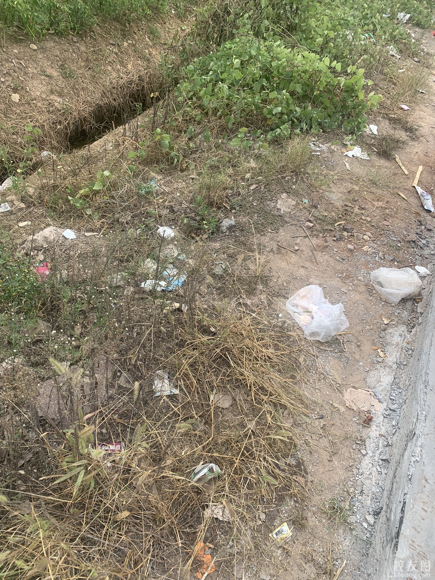一路走来很多竹竹签路边垃圾…
