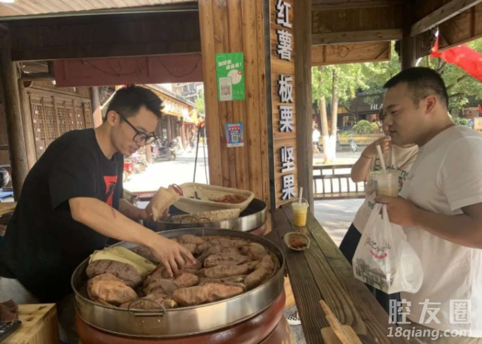 这家店就在义乌市佛堂镇老街入口处,店主叫金慧果,是金华本地人。因为这件事,金慧果和他的烤红薯店上了微博热搜。听说自己在网上“火了”,金慧果直呼“想不到。”