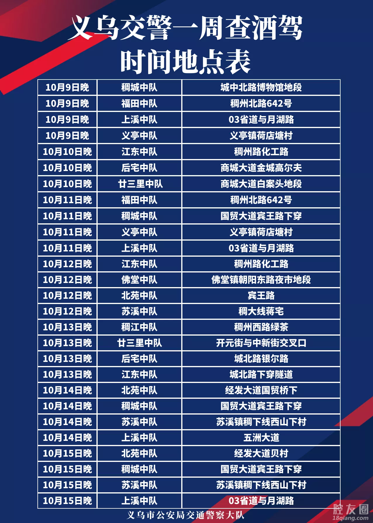 义乌交警一周查酒驾时间地点公布!赶紧看!