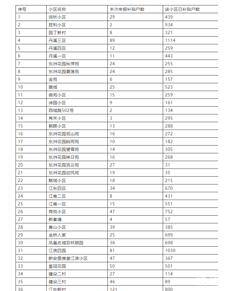 老小区开通使用管道天然气申请财政补贴情况表 (第7批次共2000户) 来源:义乌市住房和城乡建设局政府信息公开专栏