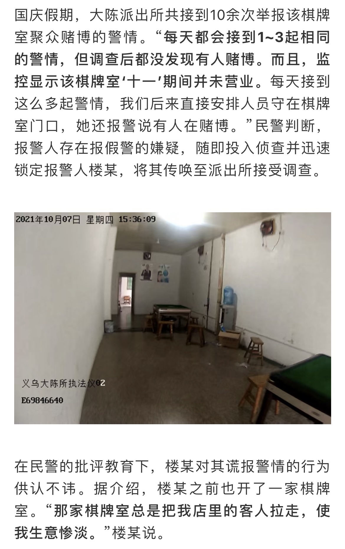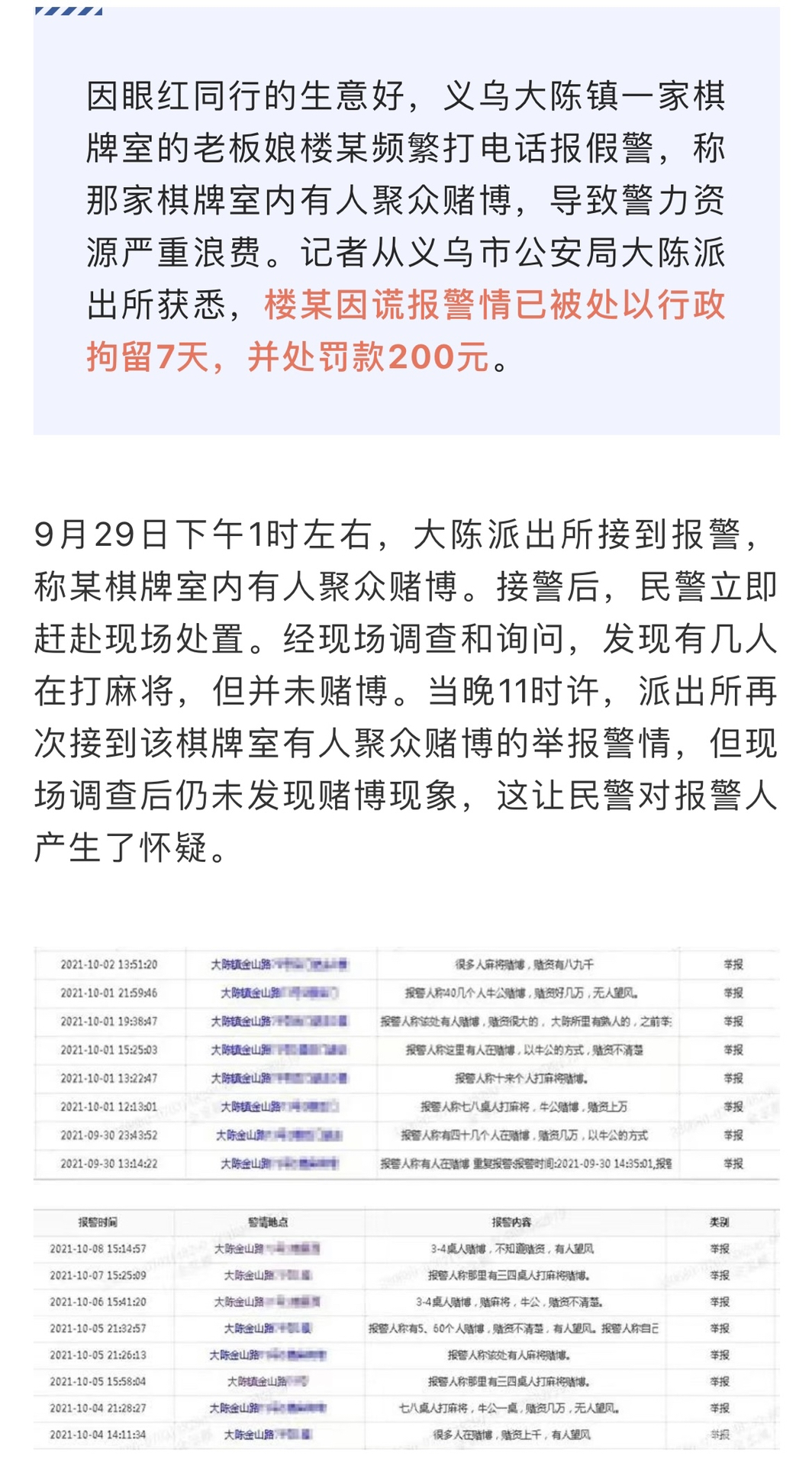 [义乌故事]棋牌室生意被抢,义乌女子10余次报假警举报 [复制链接]