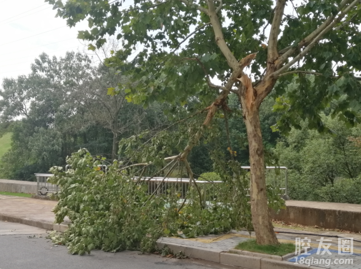 西城北路(大通路~诚信大道)段,靠近检物园一侧的人行道,有一株梧桐树的树枝折断?