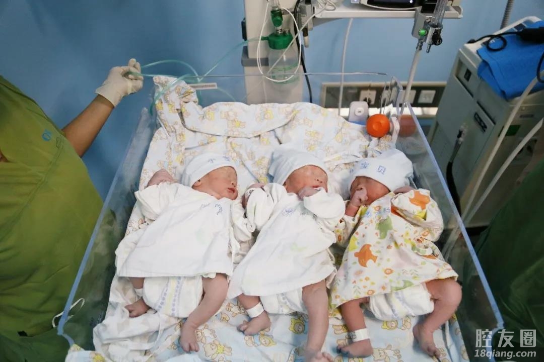 接连三个小宝贝从妈妈肚子里抱了出来,