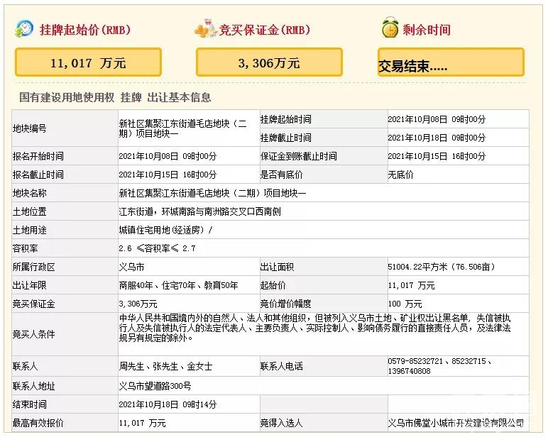 [义乌故事]超1.1亿成交!配建幼儿园!义乌这一新社区集聚地块完成出让 [复制链接]