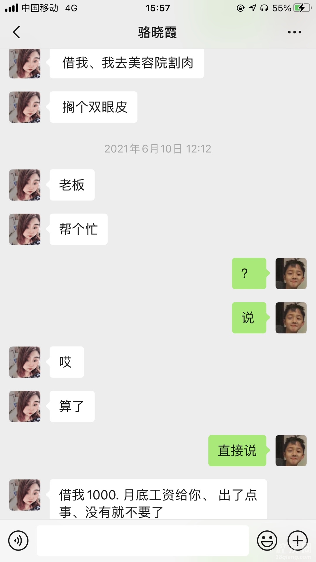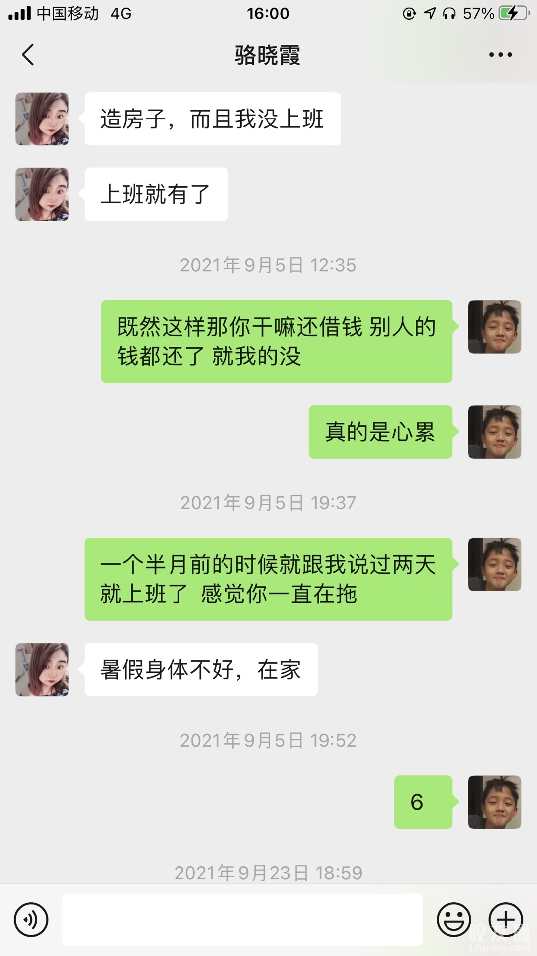 这是所有借钱的聊天记录 还有其他聊天记录在另外一只手机上 迟点发布 这女的到我这借钱的时候 说的真好听 一直催有急用 谁的钱是天上掉的?还钱的时候当看不见就是不回 我也是服了 八百块也至于到这种地步 真的是亮瞎我的眼这钱我不如拿去做慈善好  后续更劲爆 关于给他老公戴绿帽子跟别人怀孕打胎